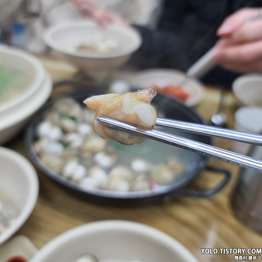물총의 정체는 동죽조개였다. 일반적으로 칼국수에 들어가는 바지락 보다 도톰하고 육즙이라고 해야하나?