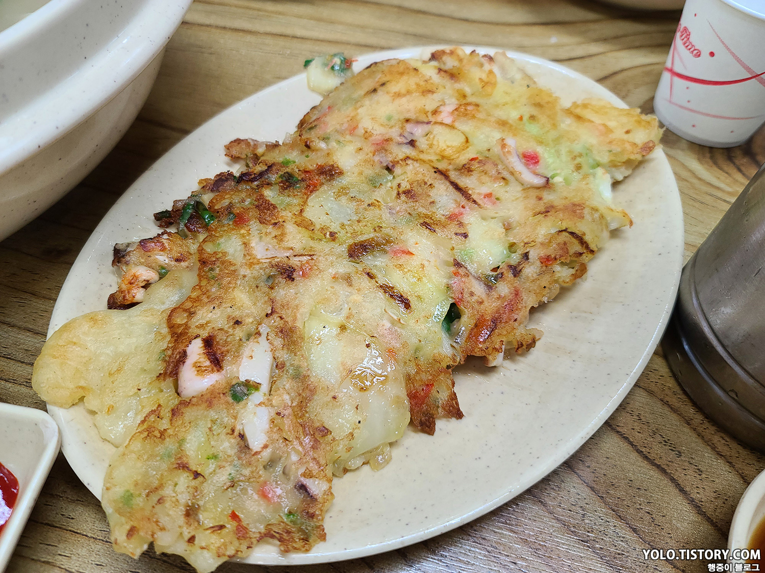 내가 아는 파전의 비쥬얼은 아니었지만 맛있었다. 좀 더 두툼하니 씹는 맛이 있었다. 내용물도 알찬 편