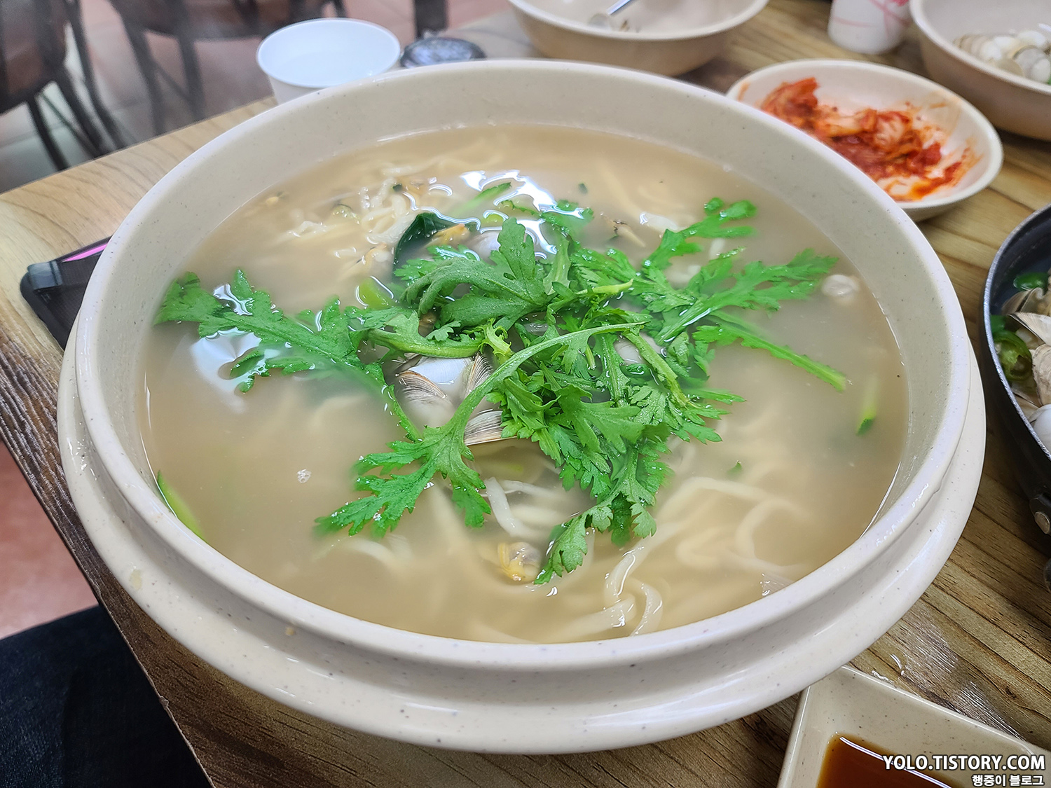 다음으로 나온 칼국수. 물총조개의 육수와 동일한데, 바지락과 국수가 들어간 느낌이다.