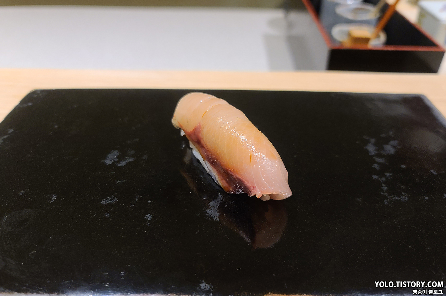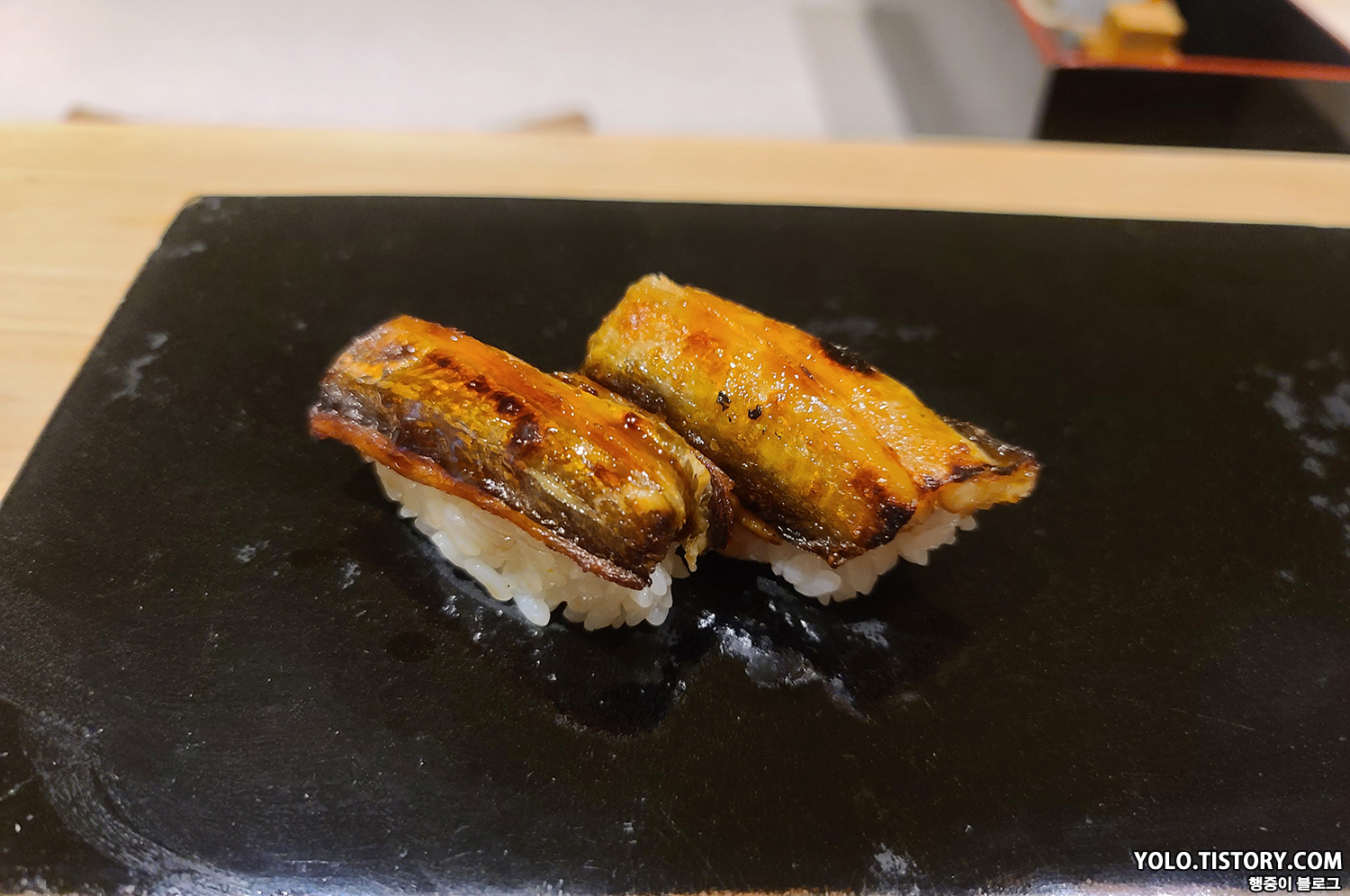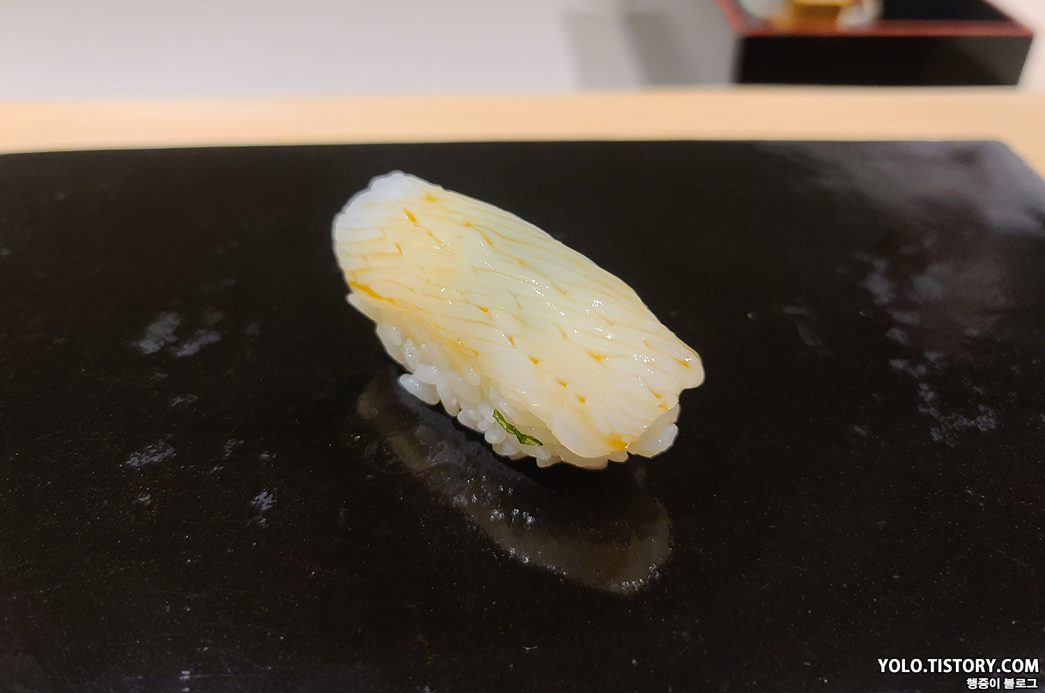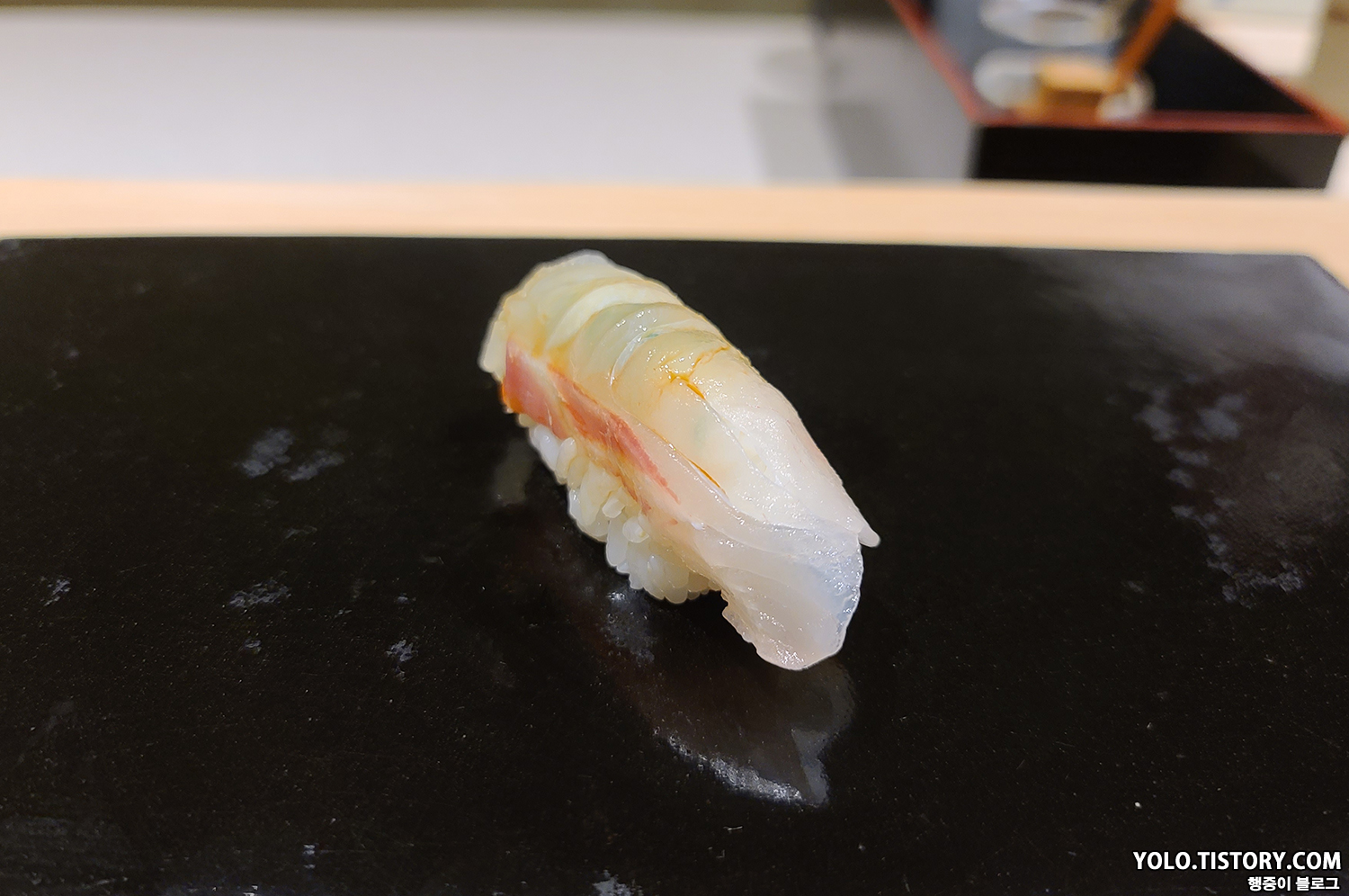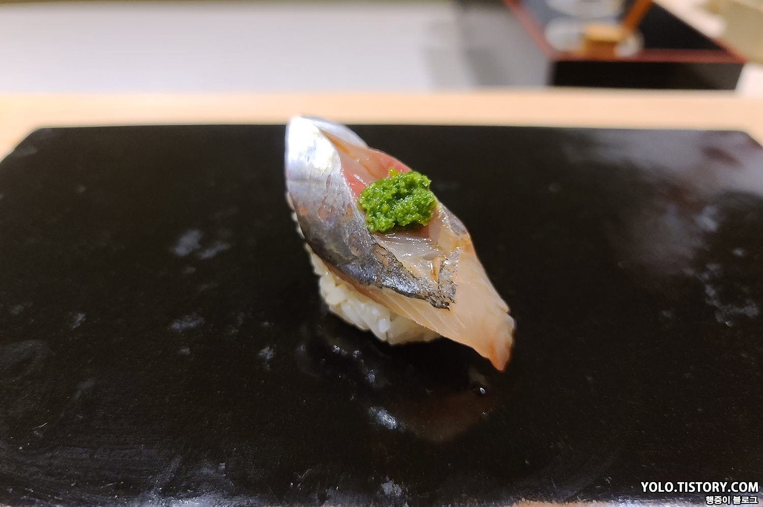 스시이토 초밥에는 모두 간장이 발라져서 제공된다. 특히 맛있었던 줄무늬 전갱이