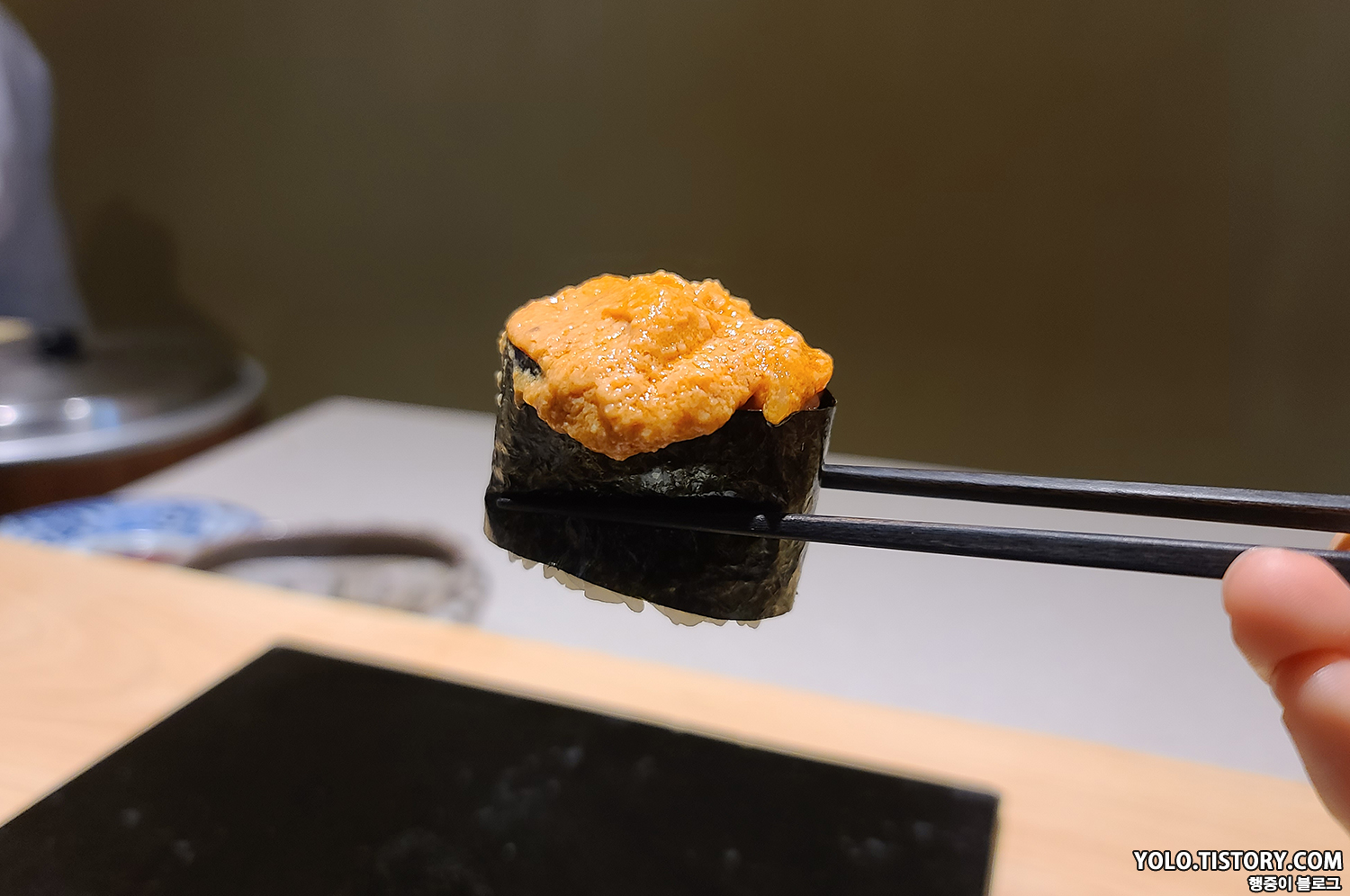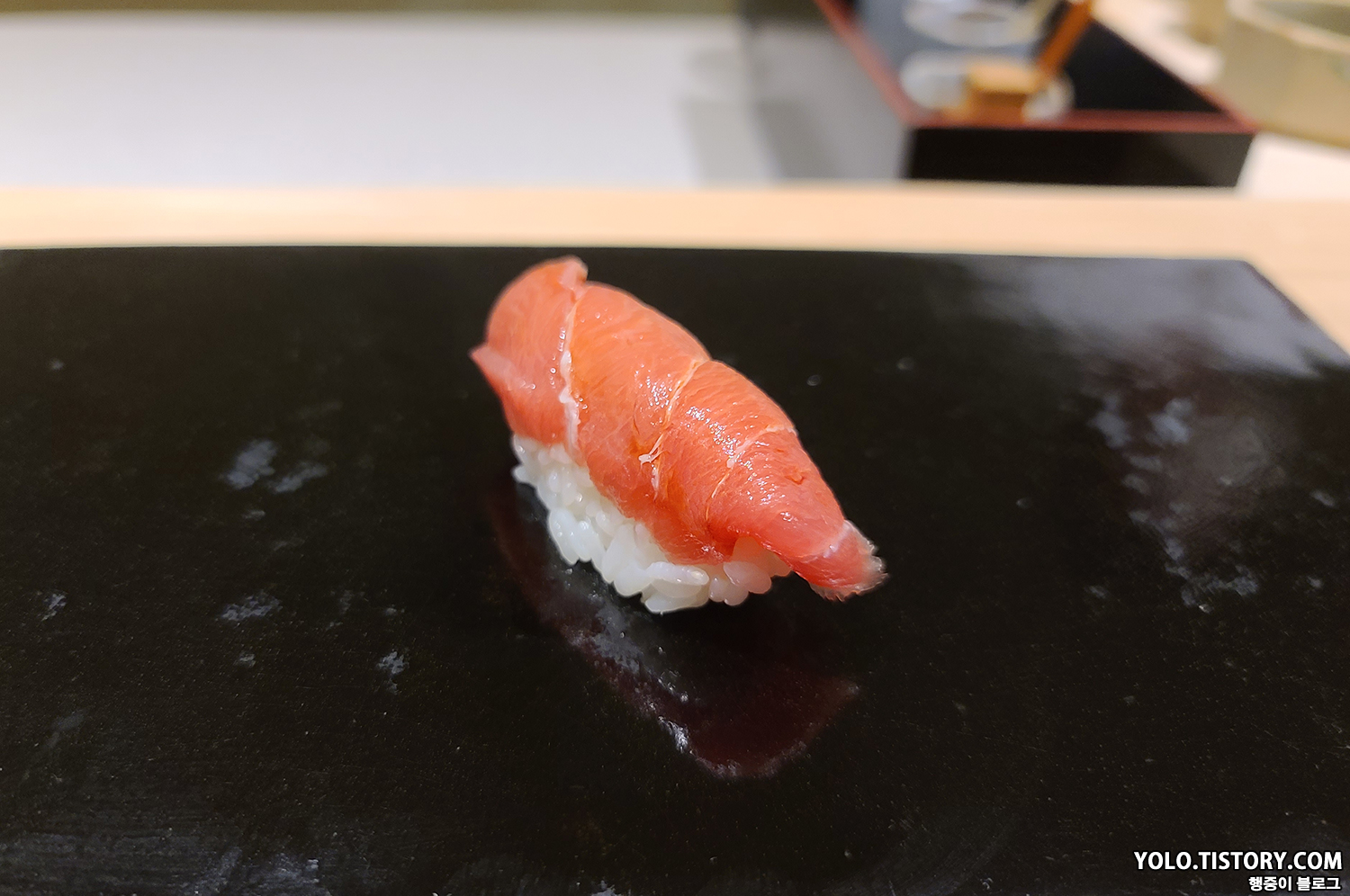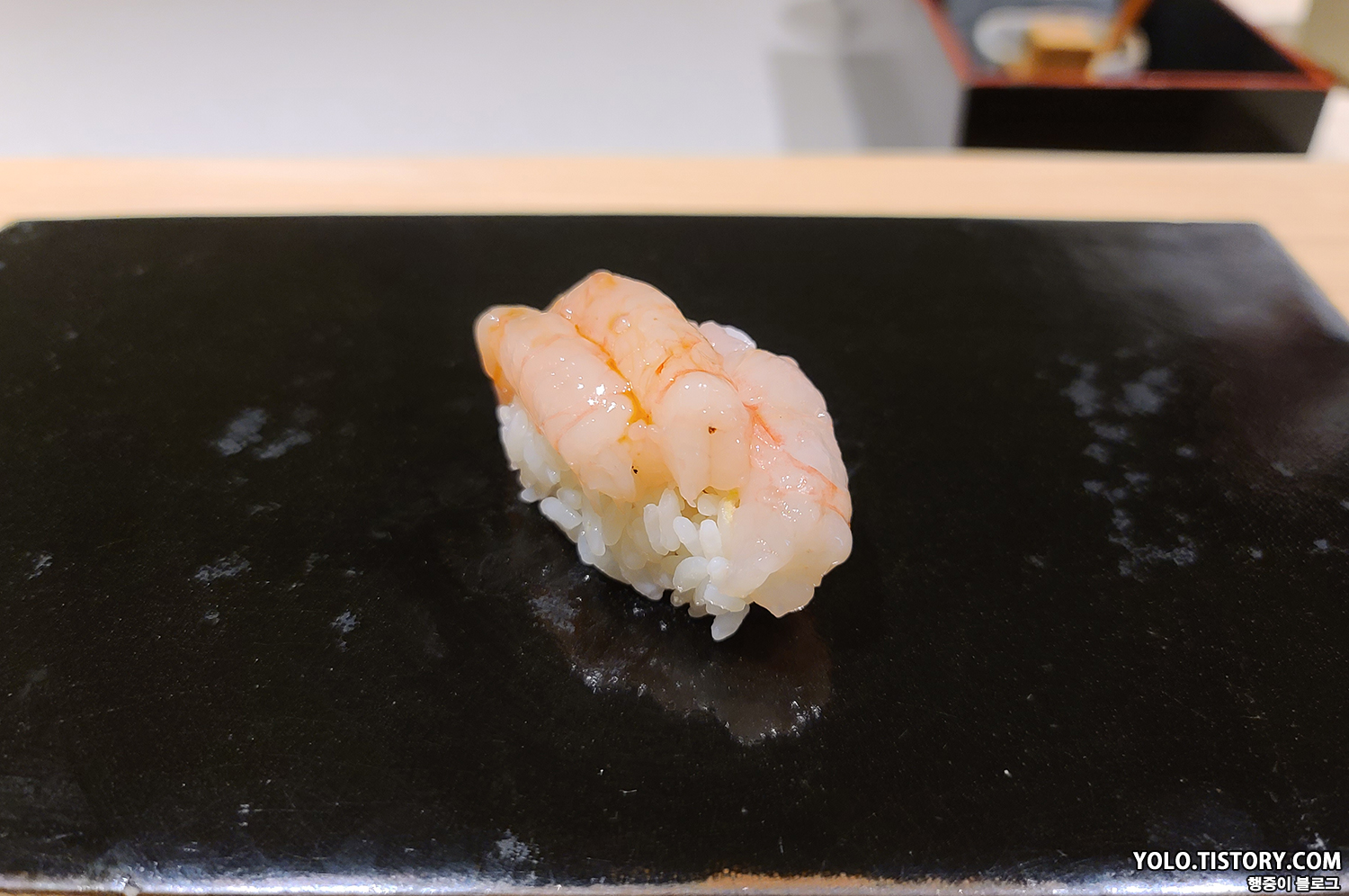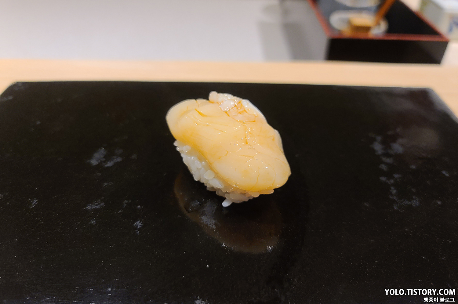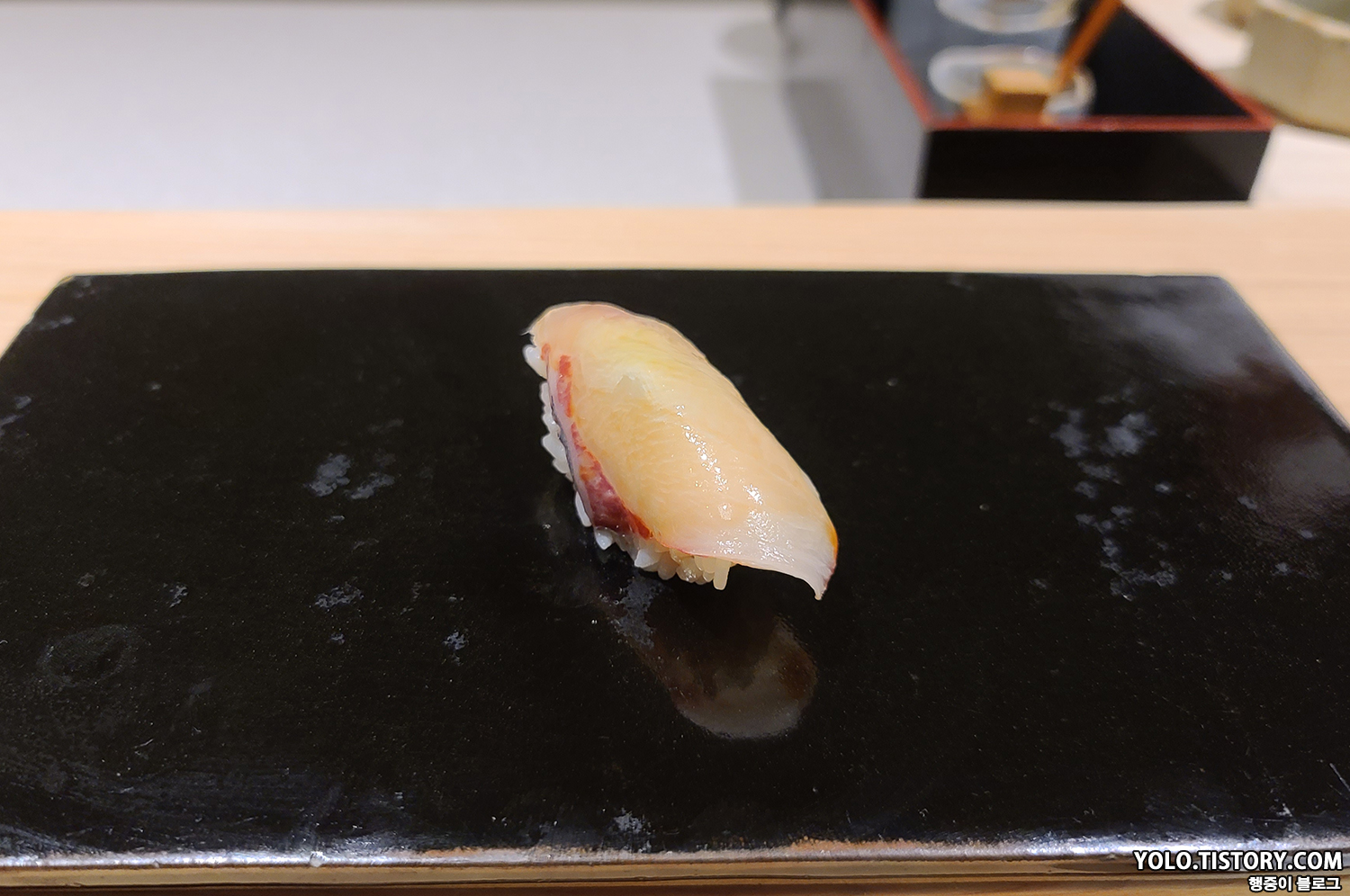 스시이토 초밥에는 모두 간장이 발라져서 제공된다. 특히 맛있었던 줄무늬 전갱이
