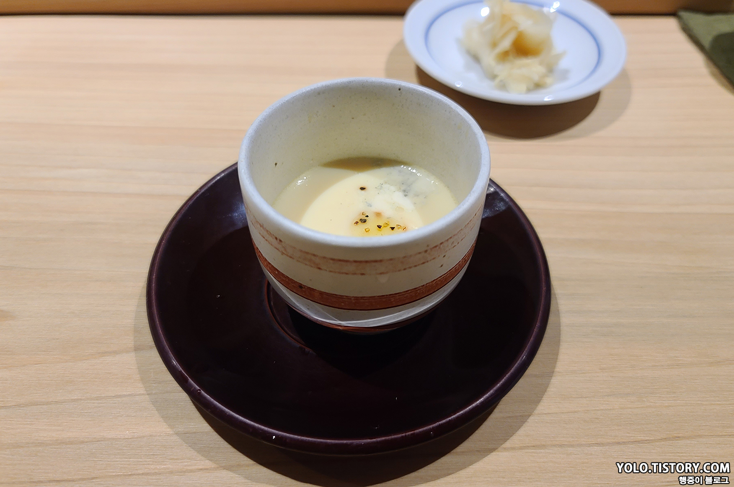 에피타이저로 제공된 달걀찜. 치즈와 트러플 오일로 고소함이 일품이었다.