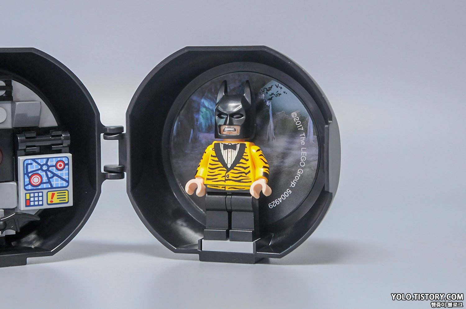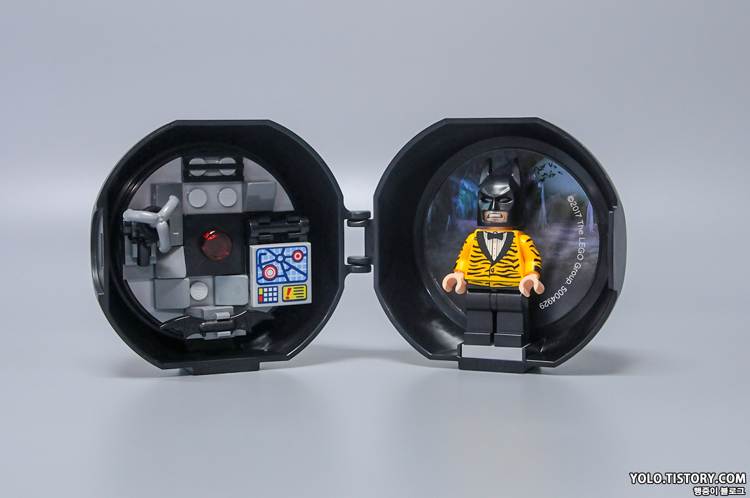 오늘 리뷰할 제품은 레고 5004929 - 타이거 턱시도 배트맨 입니다. 영화 '레고 배트맨 무비'에 등장하는 호피무늬 턱시도를 입은 배트맨이 들어 있습니다. 몇 년전 부터 나오는 배틀팟 제품 중 하나로 피규어와 함께 무기들을 넣어서 보관할 수 있는 케이스가 제공됩니다.