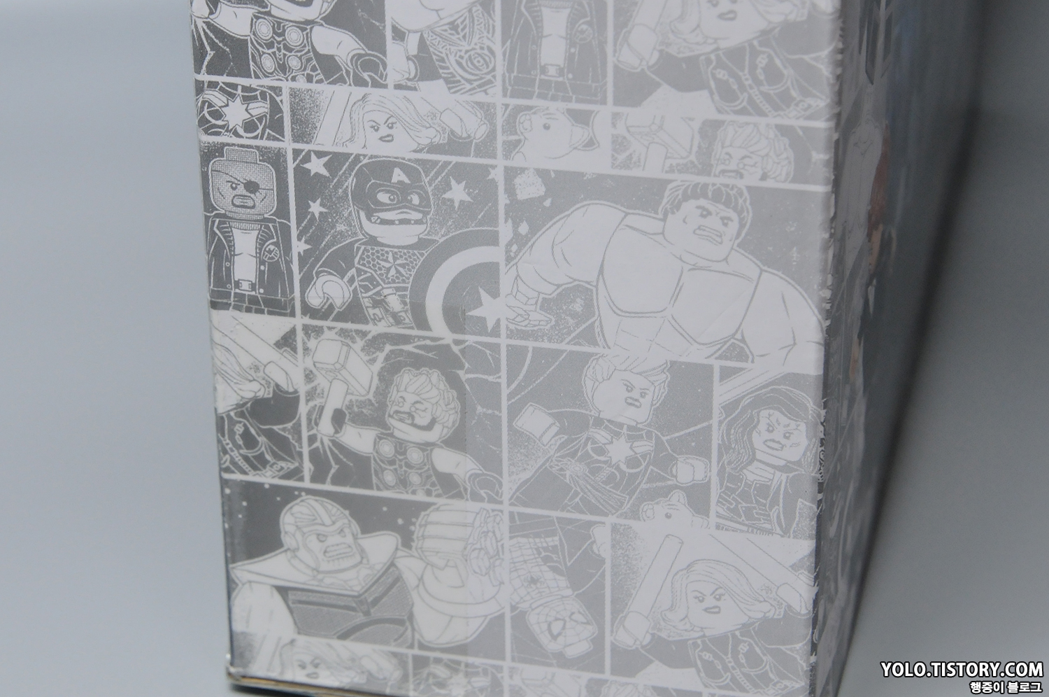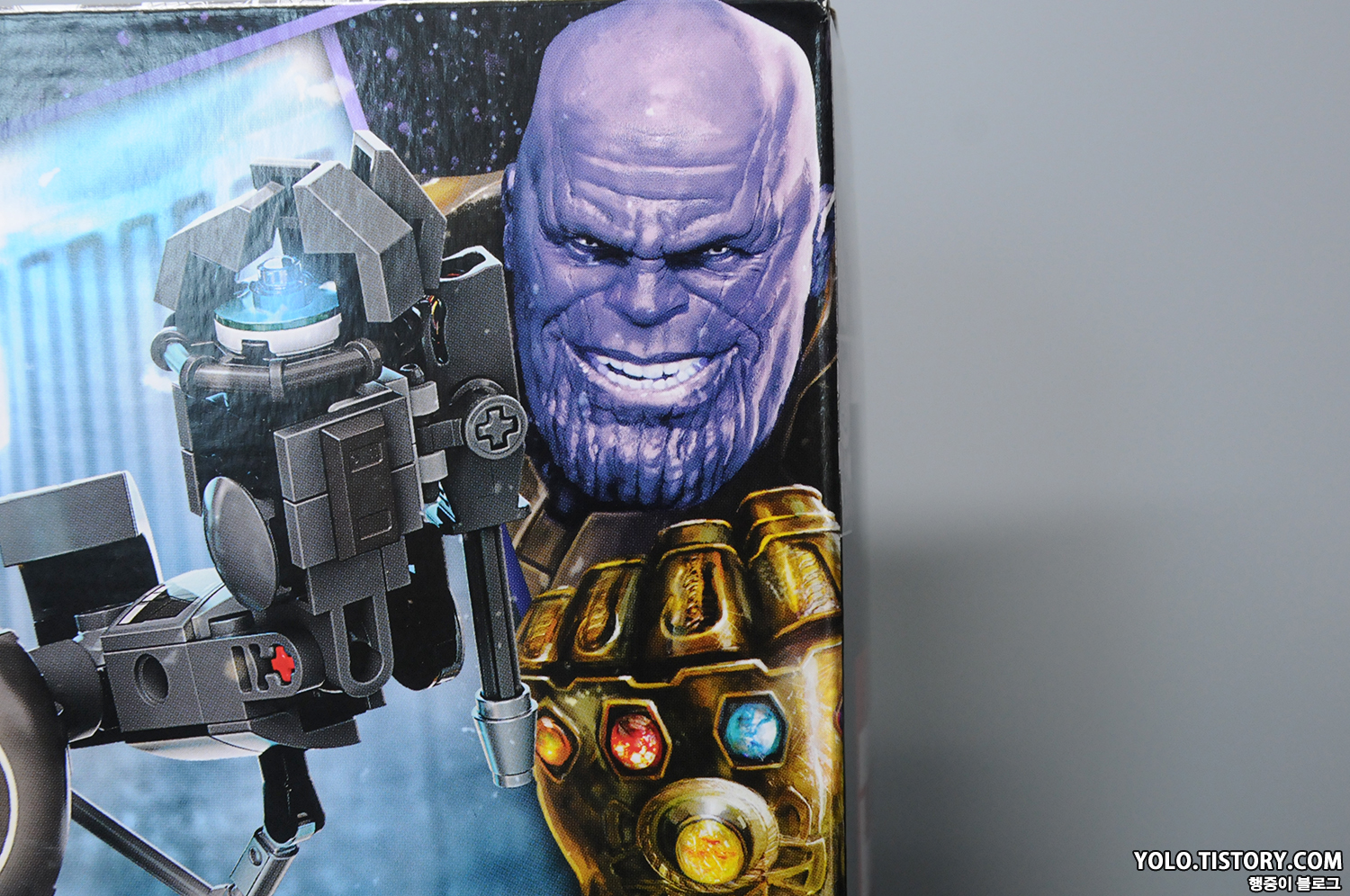 박스에 그려진 타노스와 인피니티 건틀렛이 인상적이네요. 옆에는 만화형식의 마블 미니피규어들이 그려져 있습니다.