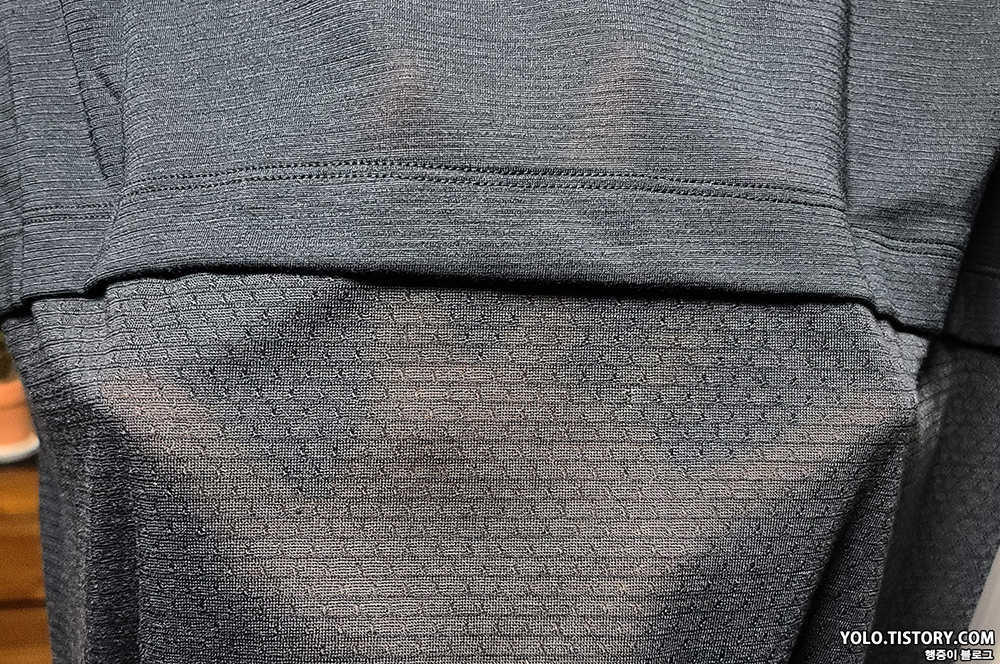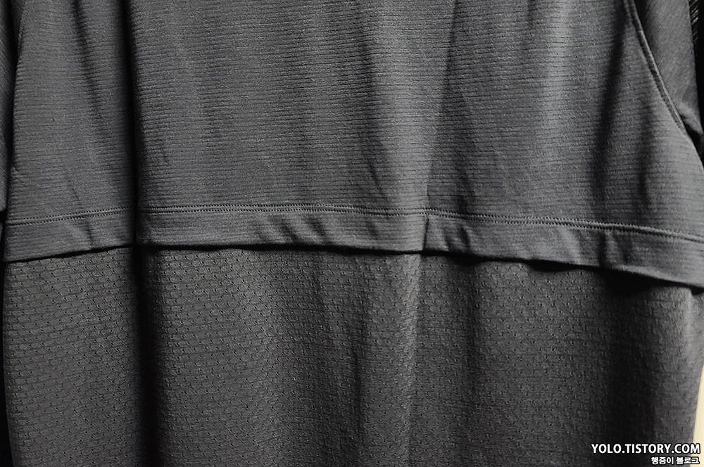 목부분엔 런더아머(RUN DERARMOU R) 텍스쳐가 쓰여있는데 나름 센스가 돋보인다. 등부분은 상부와 하부의 재질이 다르다.