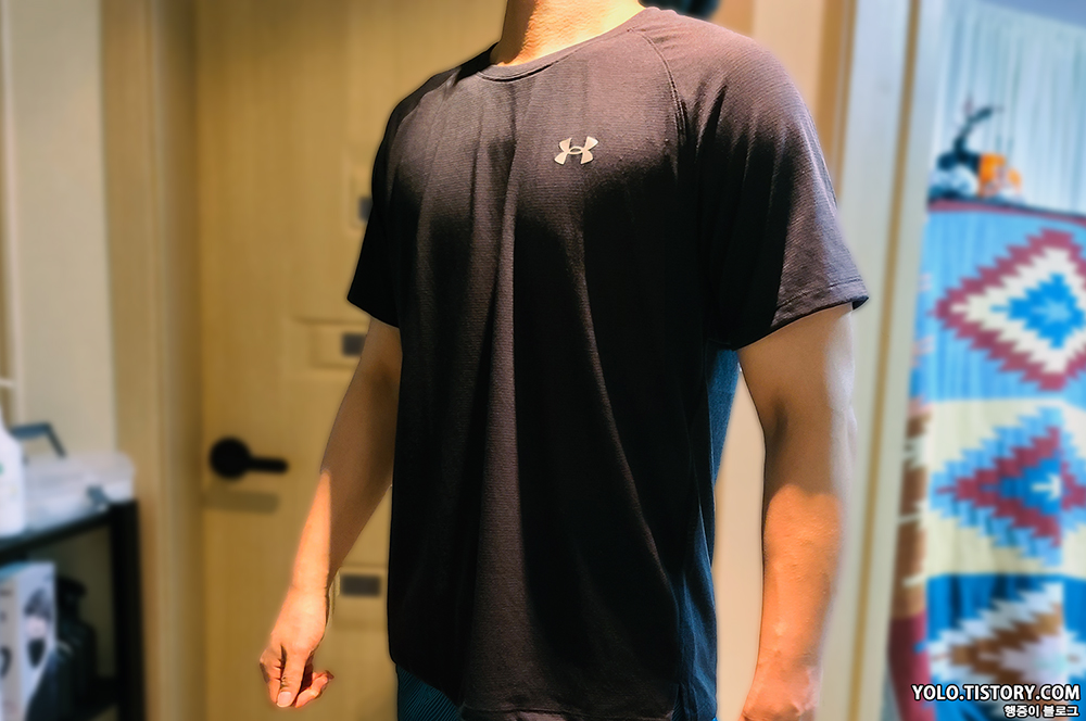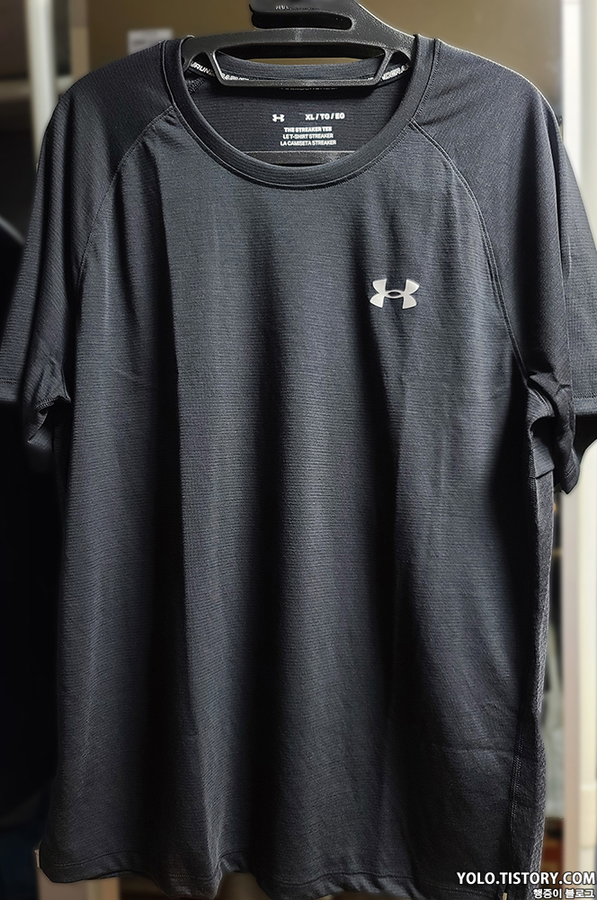 300이하 언더아머 금지 언더아머에서도 러닝 관련 제품이 제법 있는 것을 발견했다! 때마침 나이키 반팔이 조금 질려서 하나 더 사려고 했기에 고민없이 구매! 정가는 49,000원인데 현재 30% 세일해서 34,300원이다. 하지만 오픈마켓에서는 더 져렴해서 25,000원 정도에 구매했다. 핏티드 스타일이라 한치수 크게 XL로 구매.