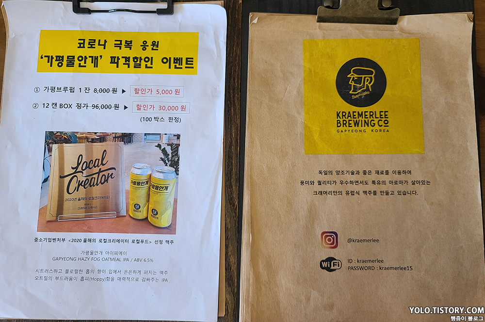 여름 나들이로 가평으로 오랜만에 놀러갔다. 차가 막힐까봐 아침부터 일찍 출발했었는데, 가려고 했던 식당이 휴무라수제맥주와 햄버거를 판다는 <크래머리 브루어리>를 찾아갔다.