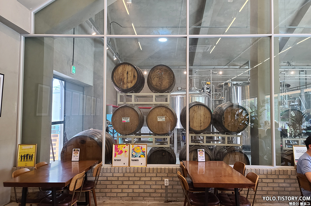 이름에 걸맞게 매장 뒷편에도 맥주 양조장이 있고, 본 건물 반 이상이 맥주 양조장으로 되어 있다. 야외 테이블과 의자도 있는데 요즘 날씨엔 조금 더울 듯. 영업시간은 오전 11시 오픈, 음료는 11시 부터 음식은 11시 반부터 주문 가능. 오전 10시 반에 도착했었는데 실내에서 대기가 가능했다.