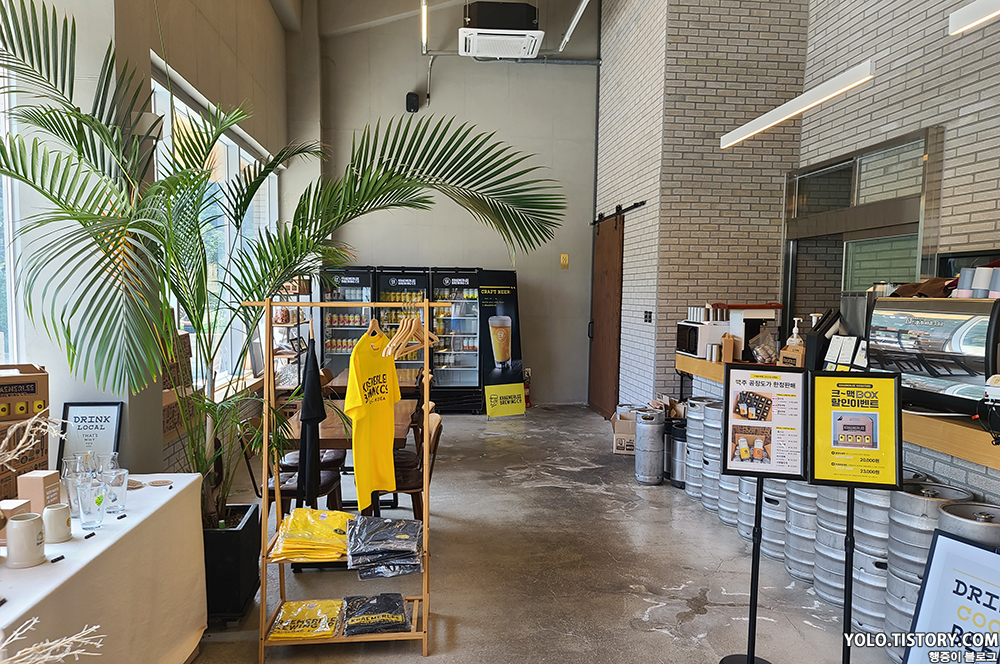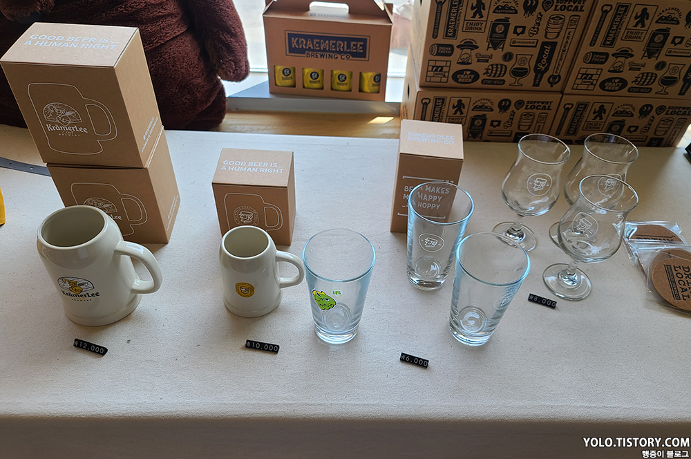 다양한 수제 맥주를 판매하고 관련 굿즈도 판매하고 있었다. 맥주를 마셔보고 싶었으나 차량을 가져갔기에 (무엇보다 낮술) 와이프만 한잔 주문하는 걸로...