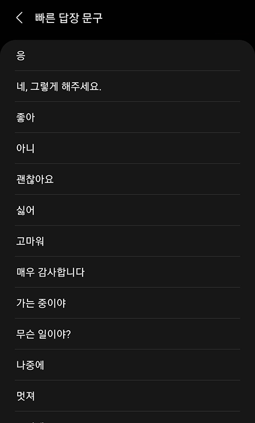 편집 화면에서는 문구의 순서를 변경하거나 삭제가 가능하다. 자주쓰는 문구를 최상단으로 보내면 좋다!