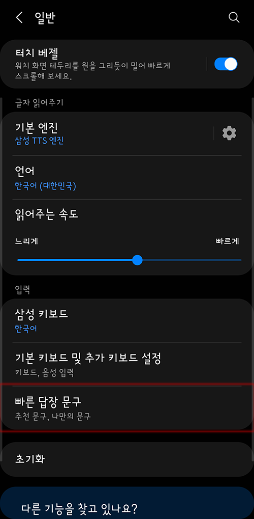 3. 키보드 설정의 <빠른 답장 문구>를 클릭한다.
