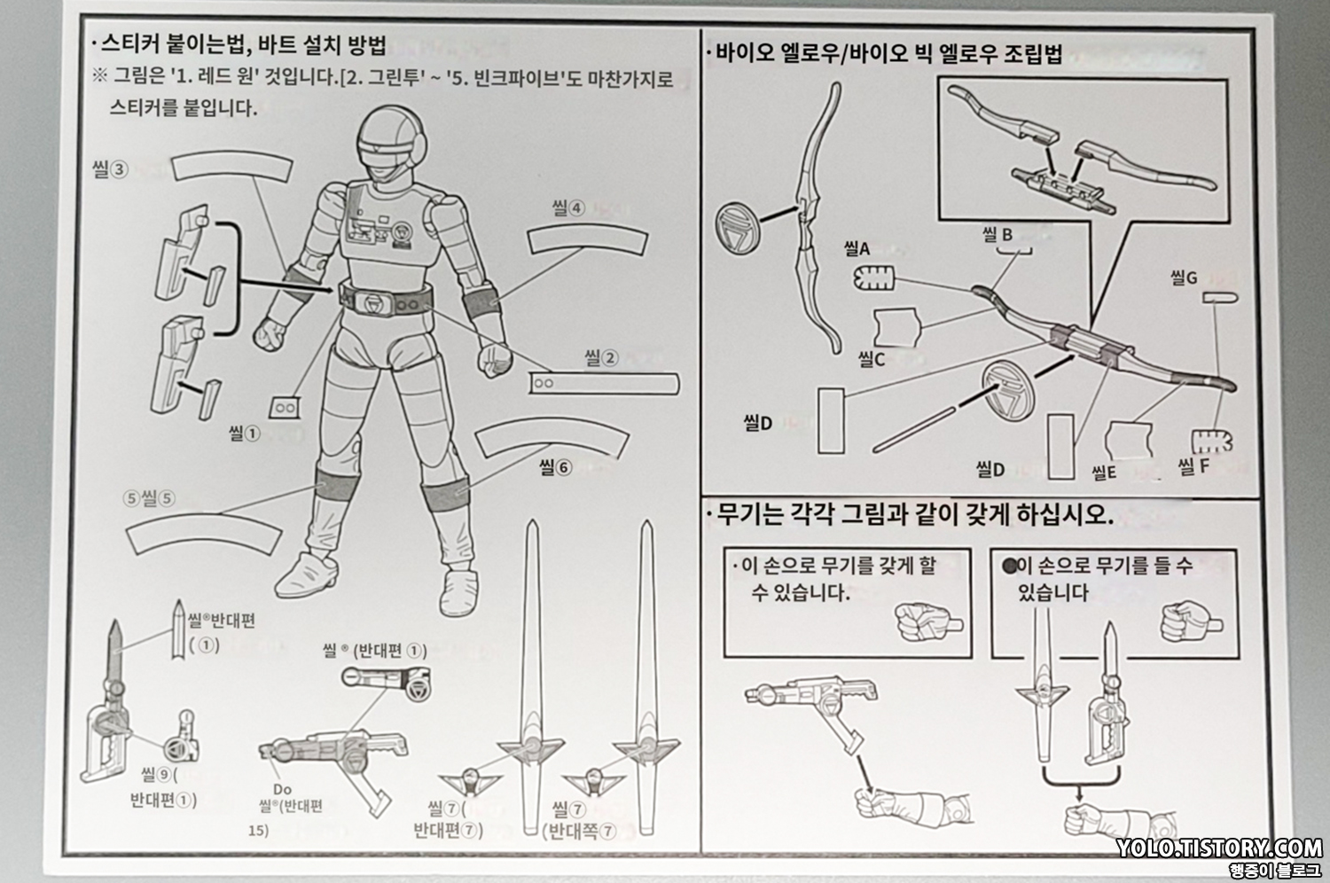 스티커의 압박... 스티커는 총 6장이 들어있습니다. 캐릭터 마다 벨트에 칠해진 색상이 다르니 주의해야 합니다.