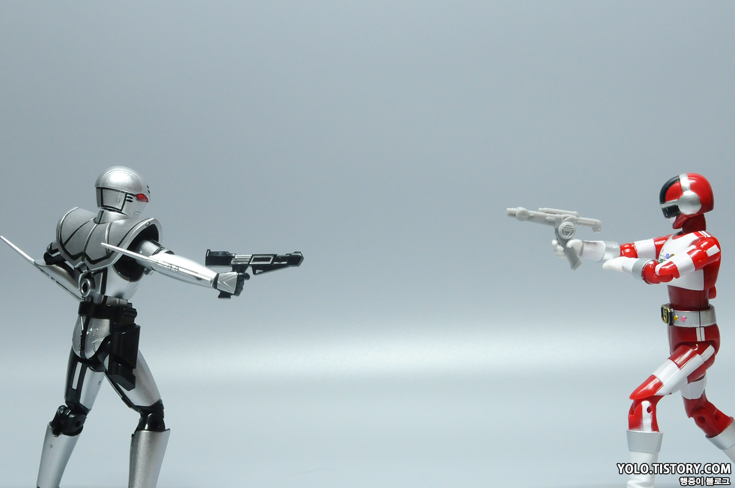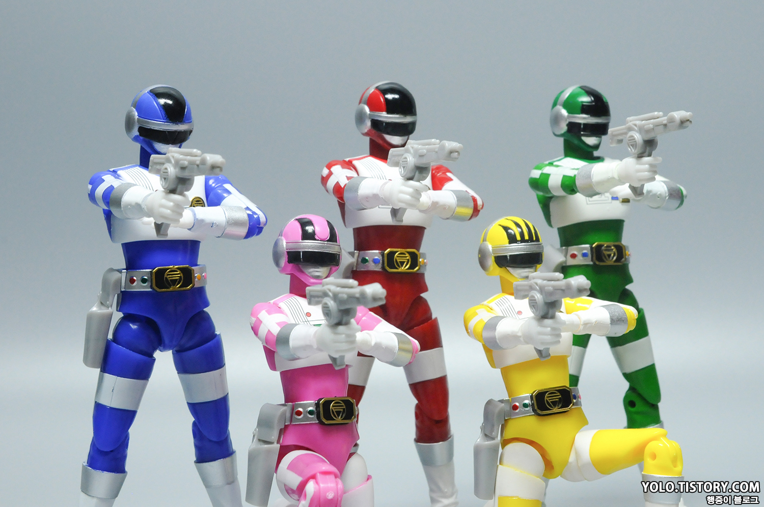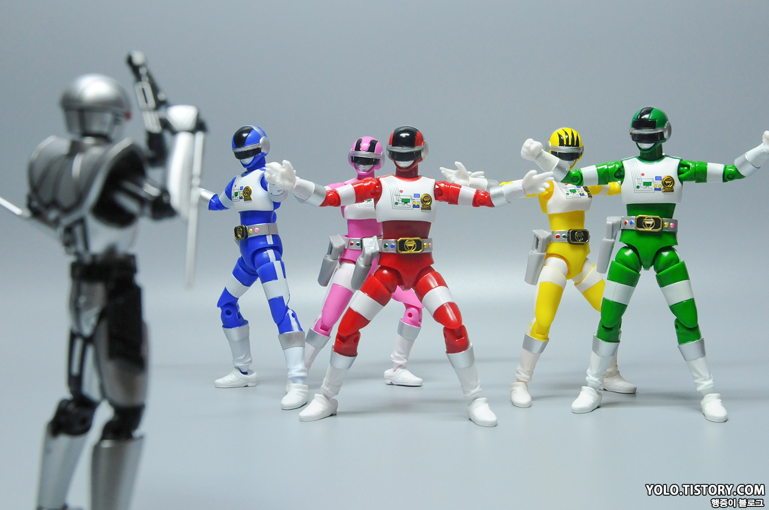 37년 만에 다시 제품화가 된 바이오맨입니다. 발매가 된다는 소식을 듣고 설렜는데, 실물로 받아보니 역시 마음에 쏙 드네요. 식완이라는 점 때문에 마감과 관절 등 퀄리티가 좋지는 못하지만 나와준 것만으로도 감사한 녀석들입니다. 벨트와 팔, 다리에 붙여야 할 스티커를 붙이기 싫어서 건담 마커 샤인 실버 색으로 칠해 주었습니다. 마감을 잘못한 건지 몇몇 녀석들은 하얗게 뜨는 사태가...