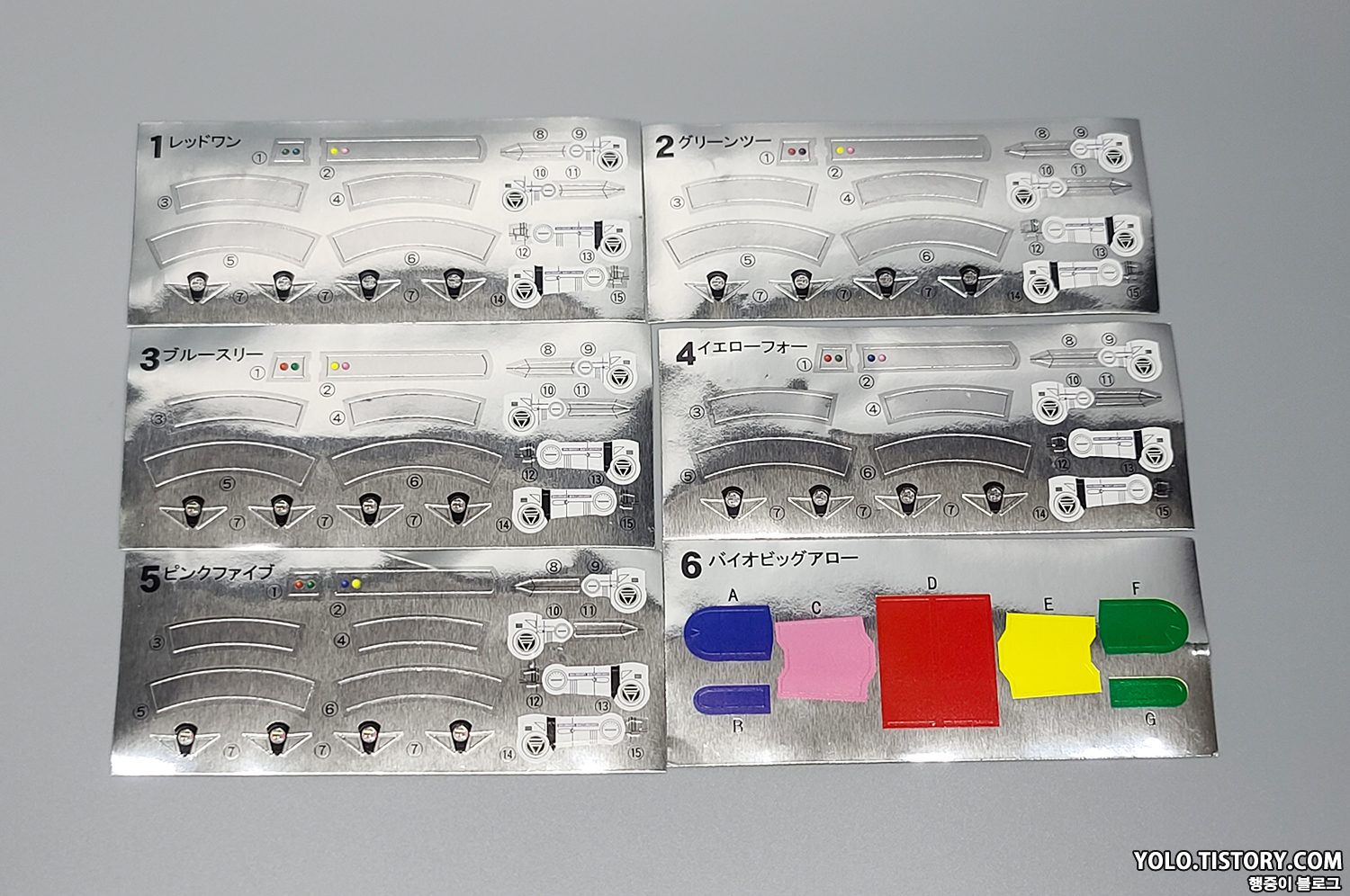 바이오맨의 무장들 마찬가지로 각 1개씩 5개가 들어 있습니다.
