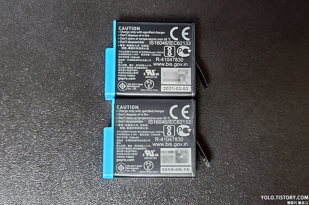 화요일날 보내고 난 뒤 수요일에 세파스에서 고프로 본체의 시리얼 번호를 요청했다. 정식 수입 제품으로 판명이되어 배터리 보상판매 대상이 되어 목요일 날 수령할 수 있었다. 배터리 하나는 기존 제품과 동일한 2019년 8월 제조였고 하나는 나름 최신인 2021년 2월 제품이었다. 충전도 문제없고 잘 동작한다!