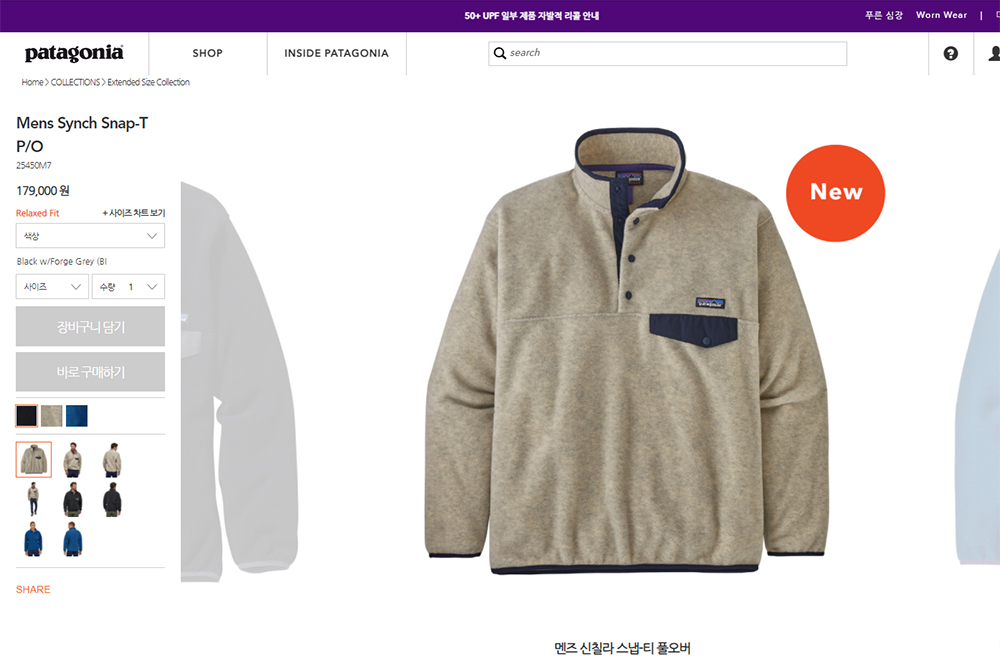 파타고니아 레트로X와 함께 거의 스테디 템이 되어버린 신칠라. 살까 말까 고민하다가 올해에 오트밀 사이즈가 수입이 되어서 구매를 결정했다. 국내 가격은 179,000원에 5% 할인받아 170,050원에 구매가 가능하다. 미국 가격이 139달러인데, 배송비까지 생각해보면 직구와 크게 차이는 나지 않는다. 문제는 사이즈였는데, M을 먼저 주문하고 보니 원하는 핏이 아닌 거 같아 L을 추가 구입해서 비교해봤다.