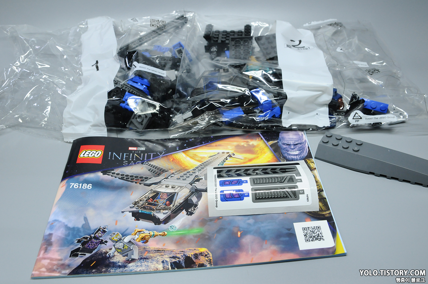 오늘 소개할 제품은 레고 76186 - 블랙팬서 드래곤 플라이어입니다. 인피니티 사가 제품으로 영화 <어벤져스: 엔드 게임>의 최후의 결전에서 포털을 타고 등장하는 모습을 제품화했습니다. 블랙팬서, 슈리, 치타우리 총 3개의 미니피규어가 들어 있고 국내 발매가 29,900원, 부품 수 202개입니다.