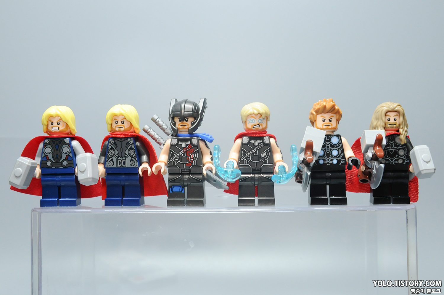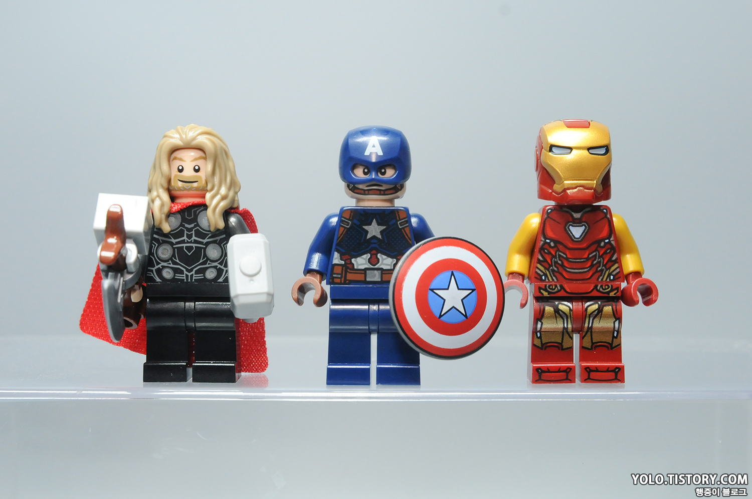 레고 토르의 변천사. 극 중 초반에 등장했던 토르의 헬멧이 레고로 표현되지 않은 게 아쉽네요. 퀄리티는 영화 <토르: 라그나로크> 제품이 가장 뛰어난 것 같습니다.