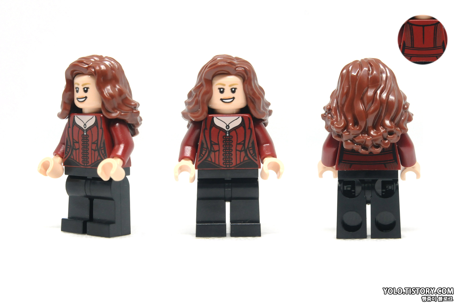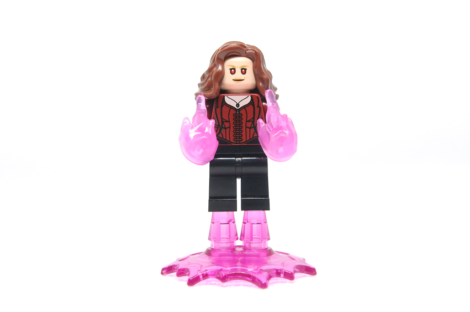 레고 스칼렛 위치 미니피규어. 마인드 스톤의 힘으로 초능력을 얻어 MCU의 최강자라 불리고 있습니다. 타노스가 힘에 겨워 폭격을 지시하게 만든 장본인. 엔드게임에서 코트 형태의 옷을 입고 나온 것으로 기억하는데 표현이 안된 것 같아 아쉽네요.