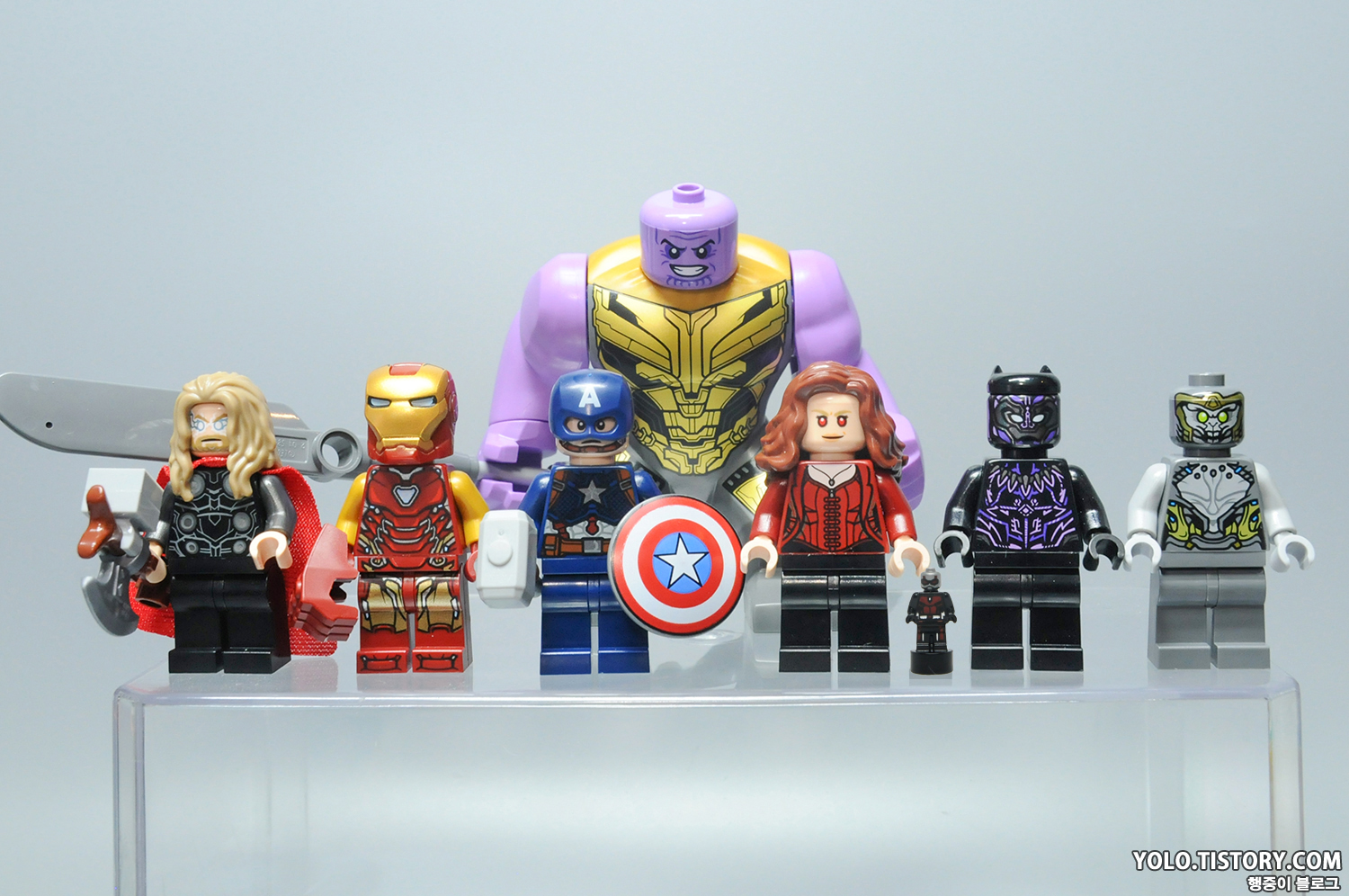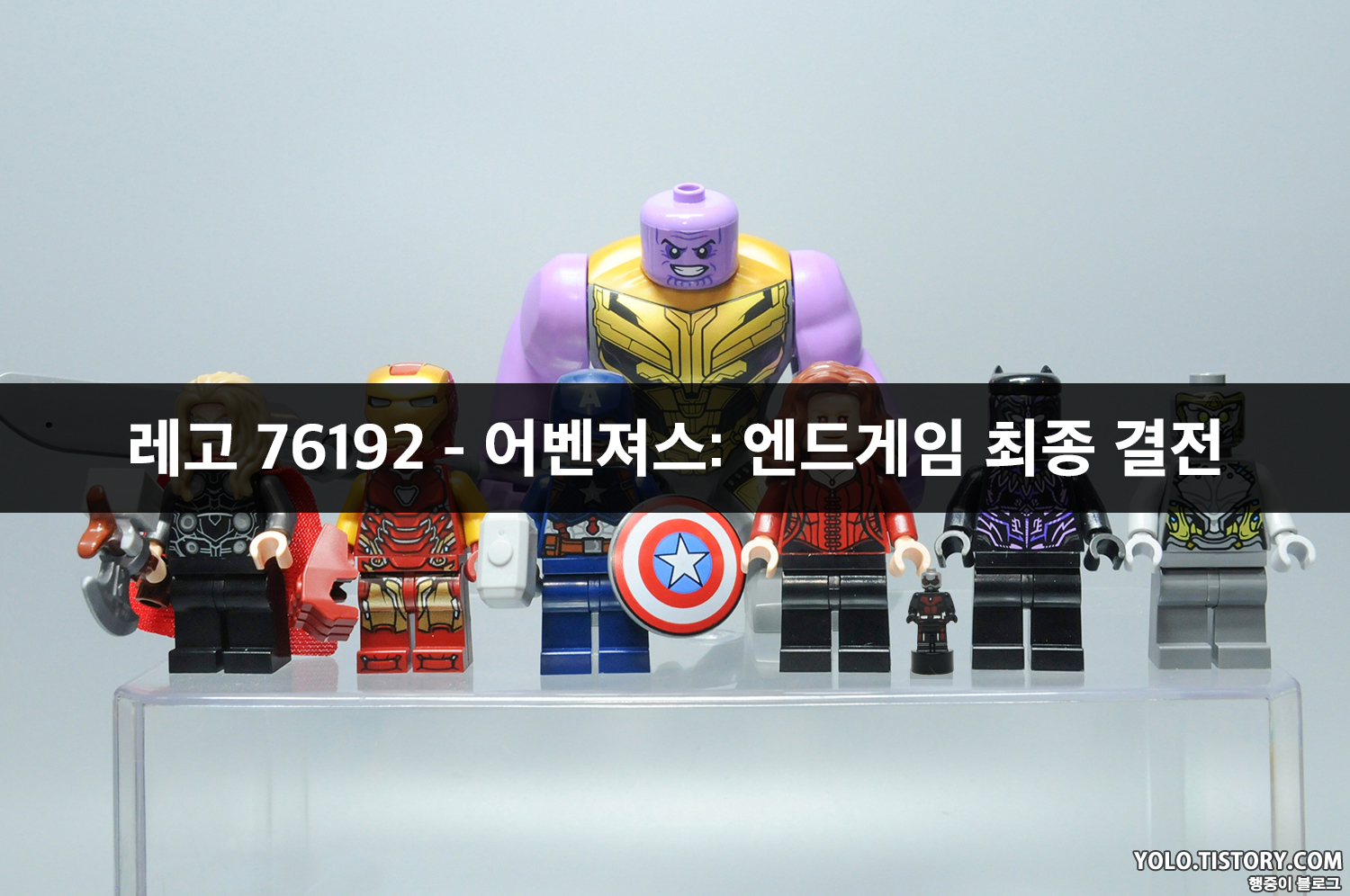 오늘 소개할 제품은 레고 76192 - 어벤져스: 엔드게임 최종 결전입니다. 인피니티 사가 시리즈로 영화 <어벤져스" 엔드게임>의 최종 결투를 표현했습니다. 타노스, 토르, 아이언맨, 캡틴 아메리카, 스칼렛 위치, 블랙팬서, 앤트맨, 치타우리 까지 총 8개의 미니피규어가 들어있습니다. 북미 가격이 $69.99인 반면 국내 발매 가격은 139,900원으로 상당히 비싸게 출시되었습니다. 부품 수는 총 527개. 제품 조립은 따로 하지 않고 미니피규어만 리뷰하도록 하겠습니다.