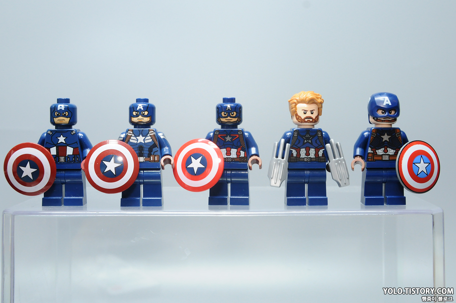 영화 버전의 캡틴 아메리카 스티브 로저스들 입니다. 스텔스 슈트는 커스텀 제품. 2013년에 처음 등장했던 캡틴 아메리카의 방패가 역시 제일 낫습니다.