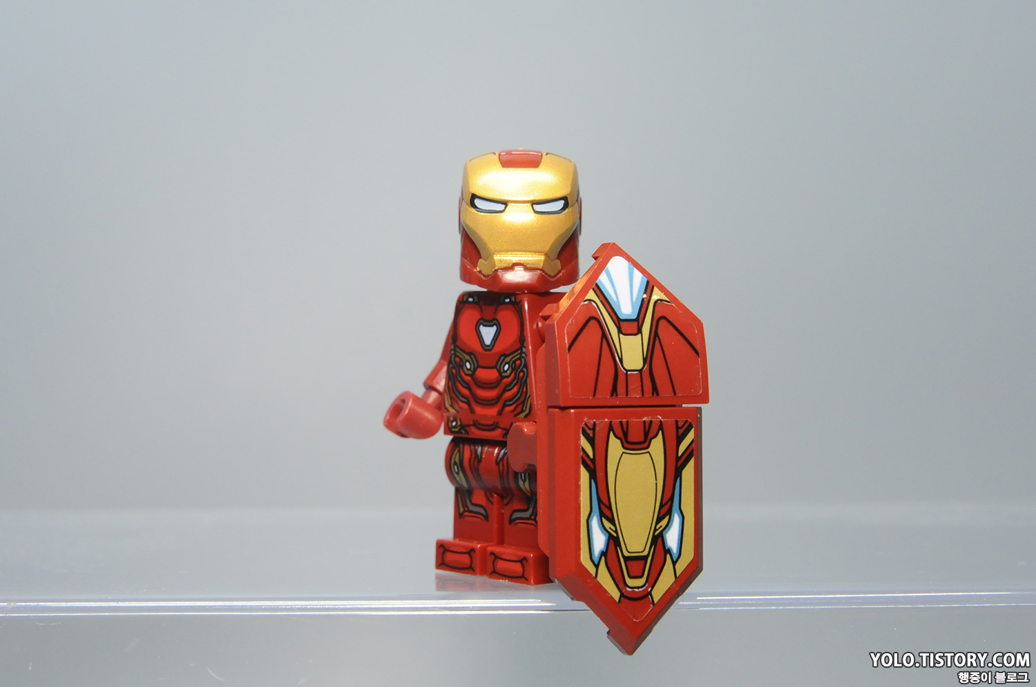 레고 아이언맨 마크85 미니피규어. 작년에 발매된 엔드게임 시리즈의 마크 85와 동일합니다. 다만 방패와 함께 빨간 건틀렛이 포함되어 있습니다. 인기가 많다 보니 여러 제품에 등장하는 마크 85.