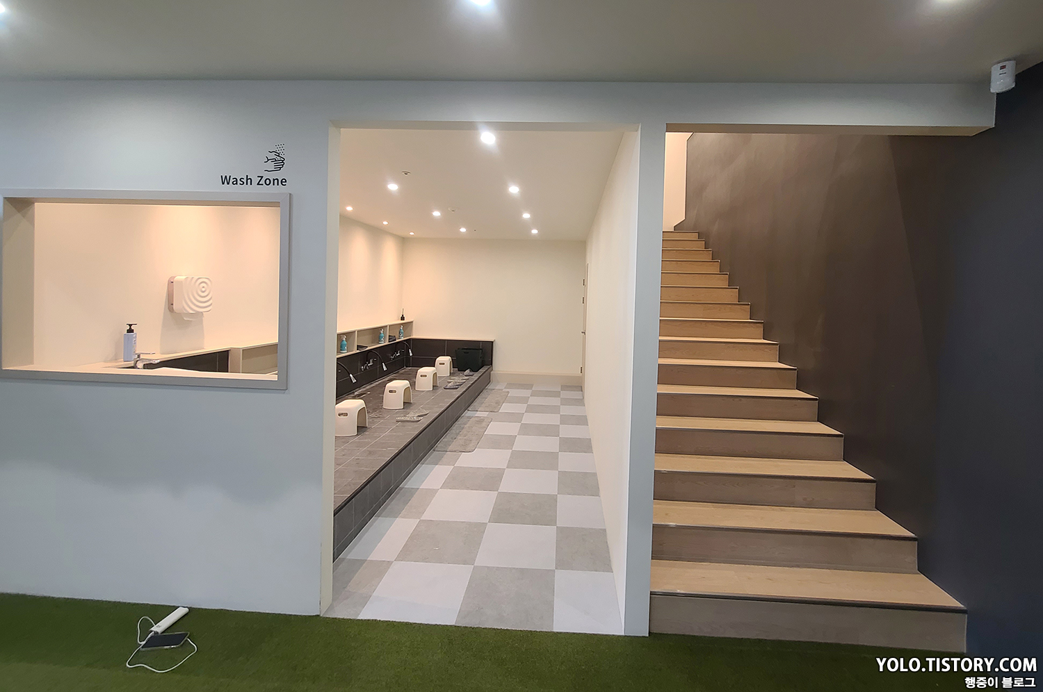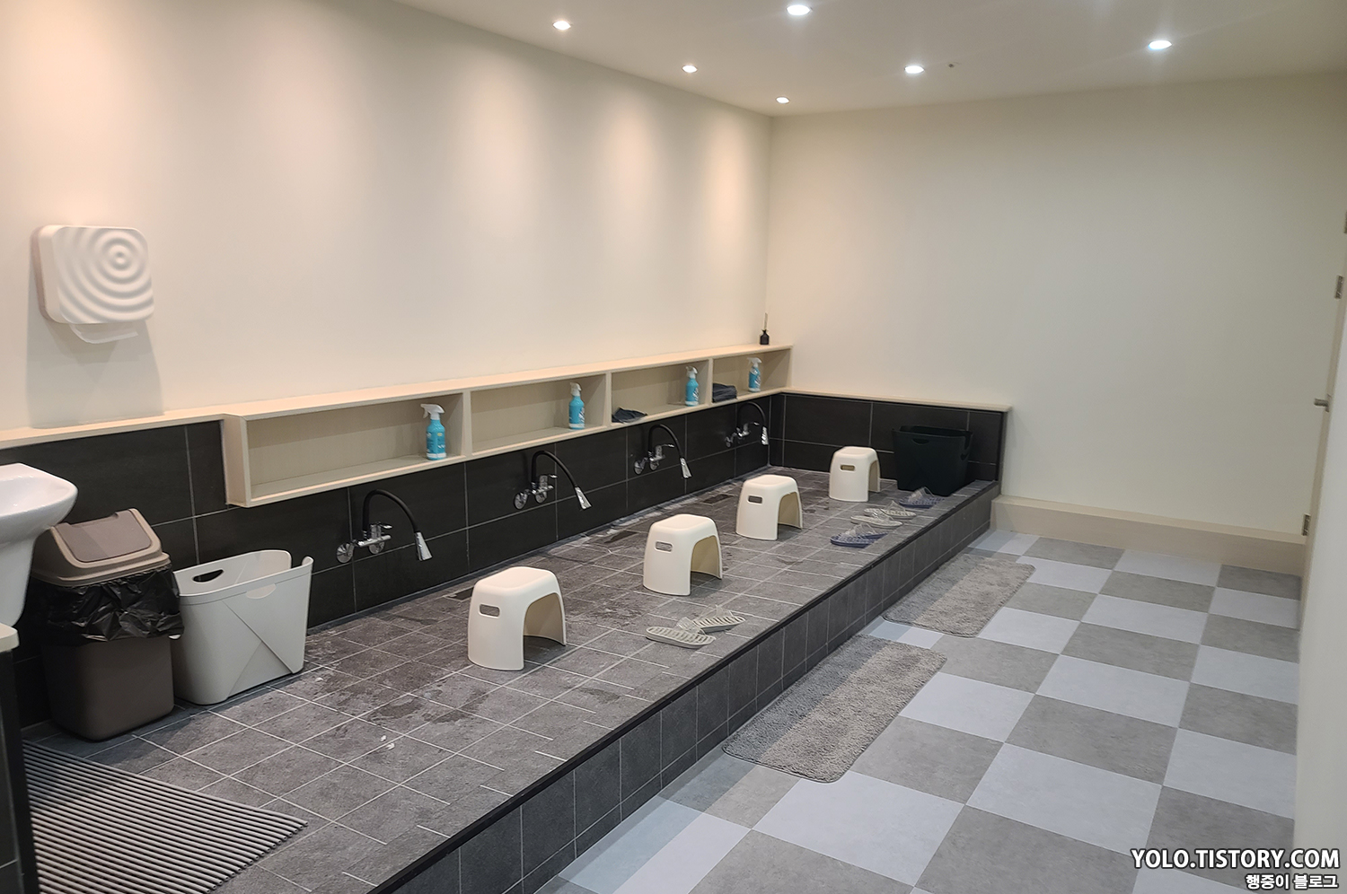 발 씻는 곳도 넓고 쾌적하다. 무려 발 수건이 구비되어 있다. 닦으면서 무지막지한 세탁량을 걱정했다.