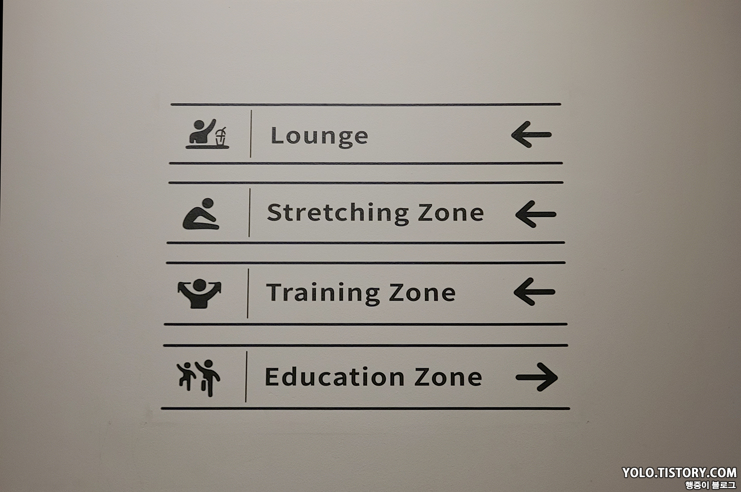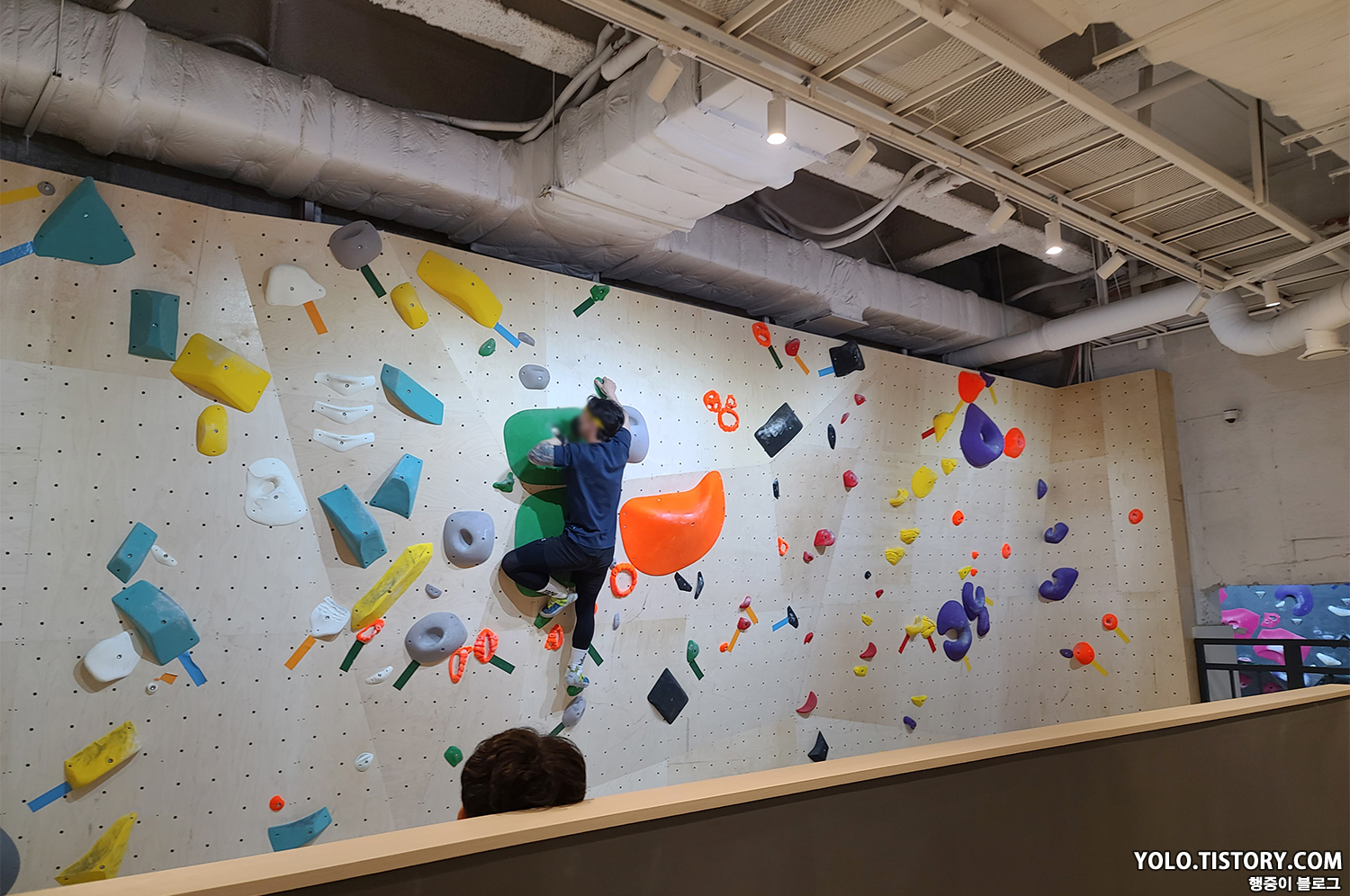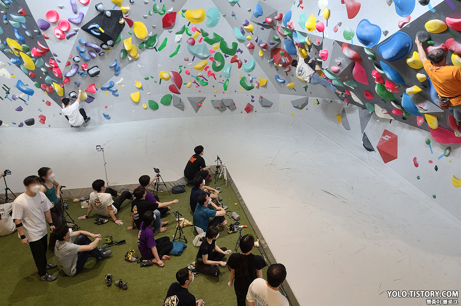 오른쪽은 강습 벽이고, 왼쪽은 스트레칭 및 휴식을 취할 수 있는 공간이 마련되어 있었다. 대부분의 암장이 층별로 구분이 되어있지 않기 때문에 스트레칭 공간이 없거나 협소한데, 별도의 독립된 공간의 느낌이라 좋았다.