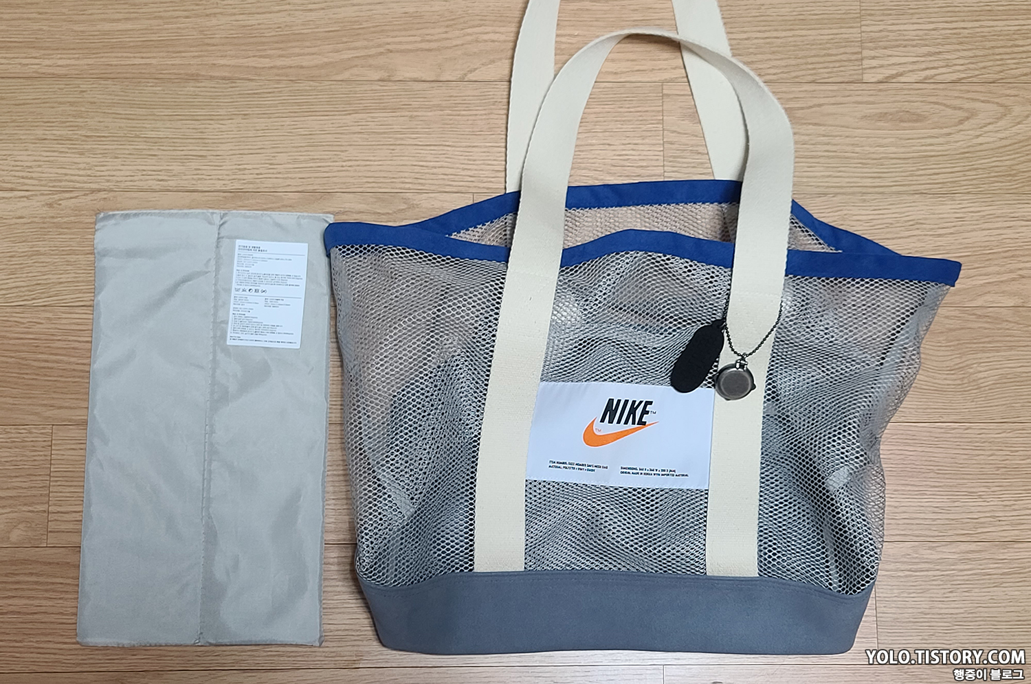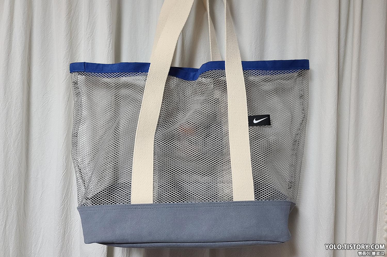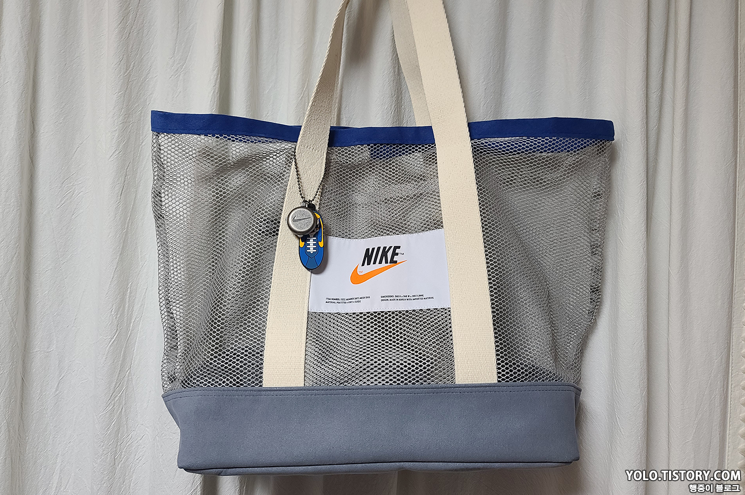 2022년 4월에 진행했던 나이키 멤버데이즈에서 20만원 이상 구매 시 증정하던 나이키 썸머 메쉬백을 뒤늦게 구매했다. 20만원 이상 구매 시 스토어에선 선착순이었고, 온라인 몰에선 추첨이라 어차피 구하기 힘들었을 것 같다. 해당 제품을 구매하게 된 계기는 퇴근 후 수영장을 다니는데, 오리발이 들어갈 만한 수영 가방이 필요해서였다. 수영 가방으로 고려할 만한 부분은 첫째, 물이 잘 마를 것. 둘째, 크기가 클 것이었는데 대부분의 운동가방은 첫 번째 조건을 만족시키지 못하였다. 그래서 구매하게 된 게 나이키 썸머 메쉬백이다.