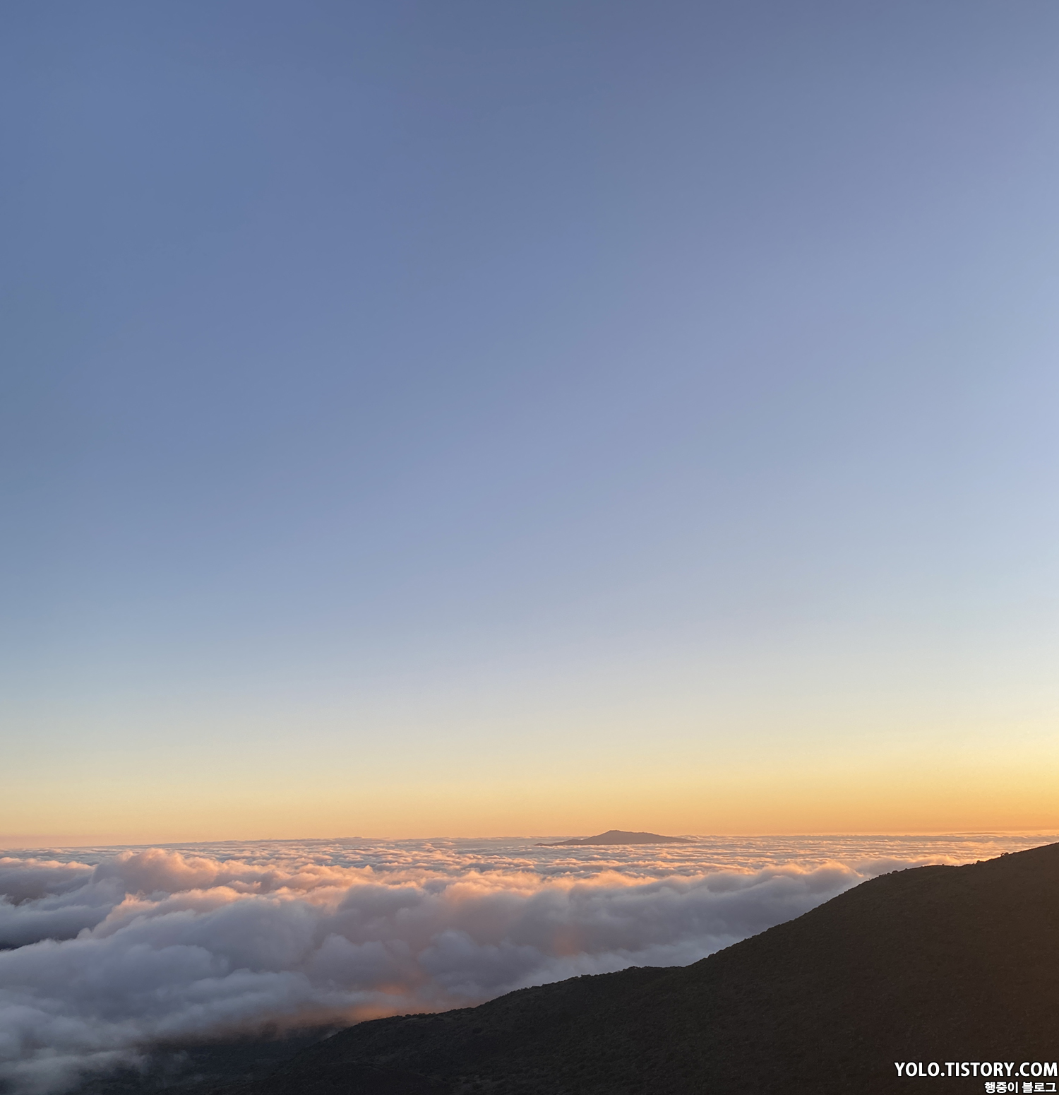 저녁 6시쯤 되니 사람들이 하나둘씩 올라오기 시작했다. 구름이 계속 걷히지 않아서 오늘 노을 보기는 망했구나 싶었는데 시간이 지날수록 구름이 점점 걷히더니 저녁 7시가 될 쯤엔 모든 구름이 사라졌다. 자연의 신비... 너무 신기했다.