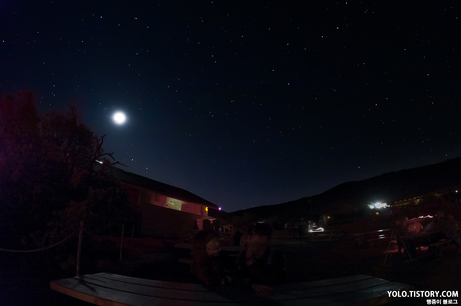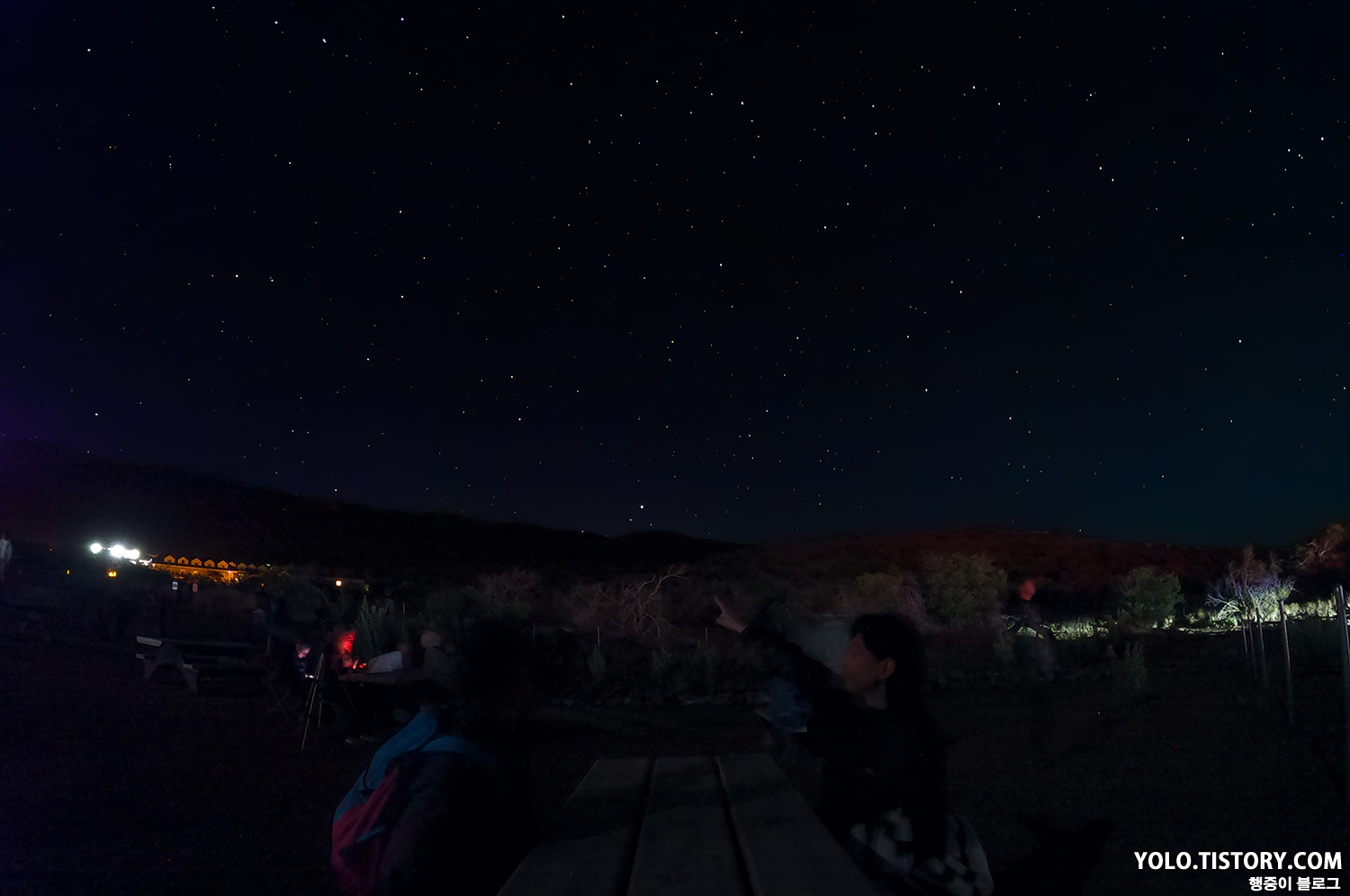 다시 방문자 센터로 내려가서 화장실을 들렀다. 방문자 센터는 영업이 끝나서 아래 위치한 간이 화장실에 갔다. 석양이 완전히 사라지니 하늘에서 별이 쏟아졌다. 내가 기대했던 은하수는 볼 수 없었지만, 그래도 많은 별들이 하늘을 수놓고 있었다. 북두칠성도 잘 보였다. 약 20분 정도 별을 보다가 차량들이 하나둘씩 내려가길래 가로등이 없는 것이 지레 무서워 내려갔다. 숙소에 오는 길엔 역시 가로등이 없어서 운전하기가 어려울까 봐 걱정했는데, 생각보다 반사판이 정말 잘 되어있어 크게 문제 되진 않았다. 다만 차량들이 상향 등을 끄지 않아서 눈뽕을 당하는 게 단점이었다.