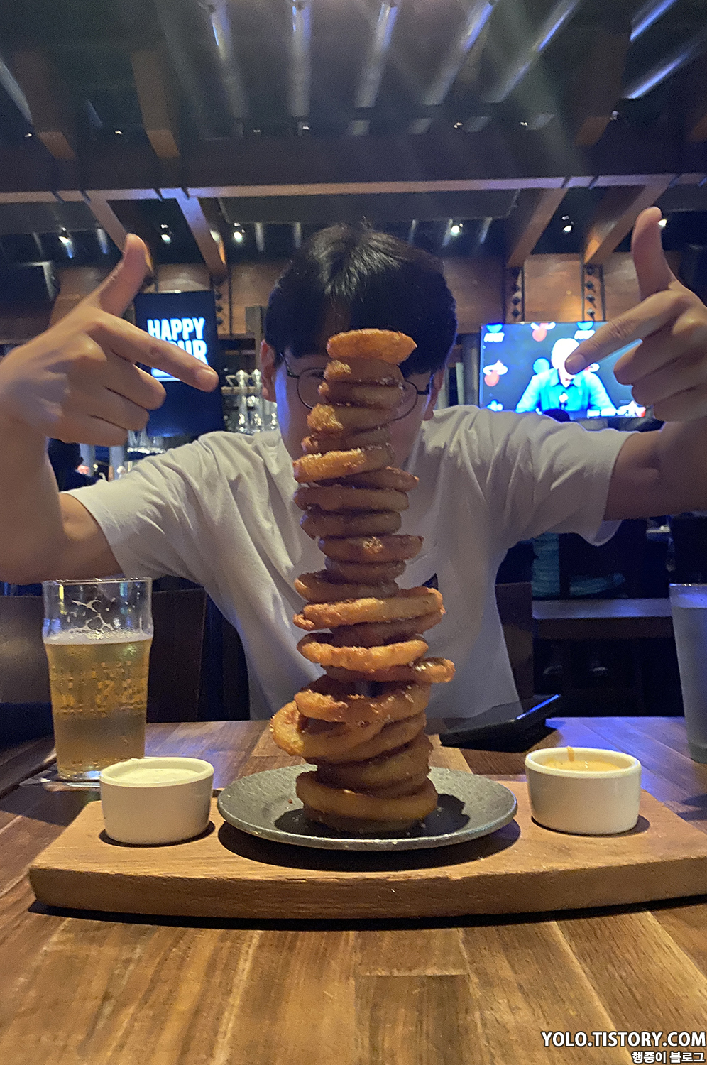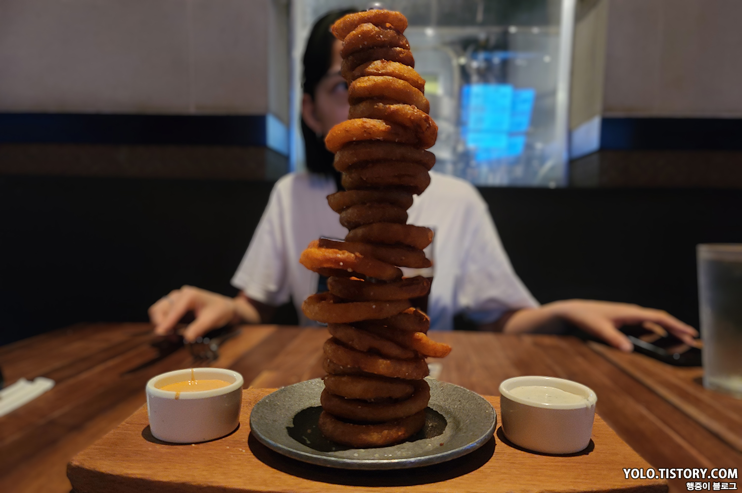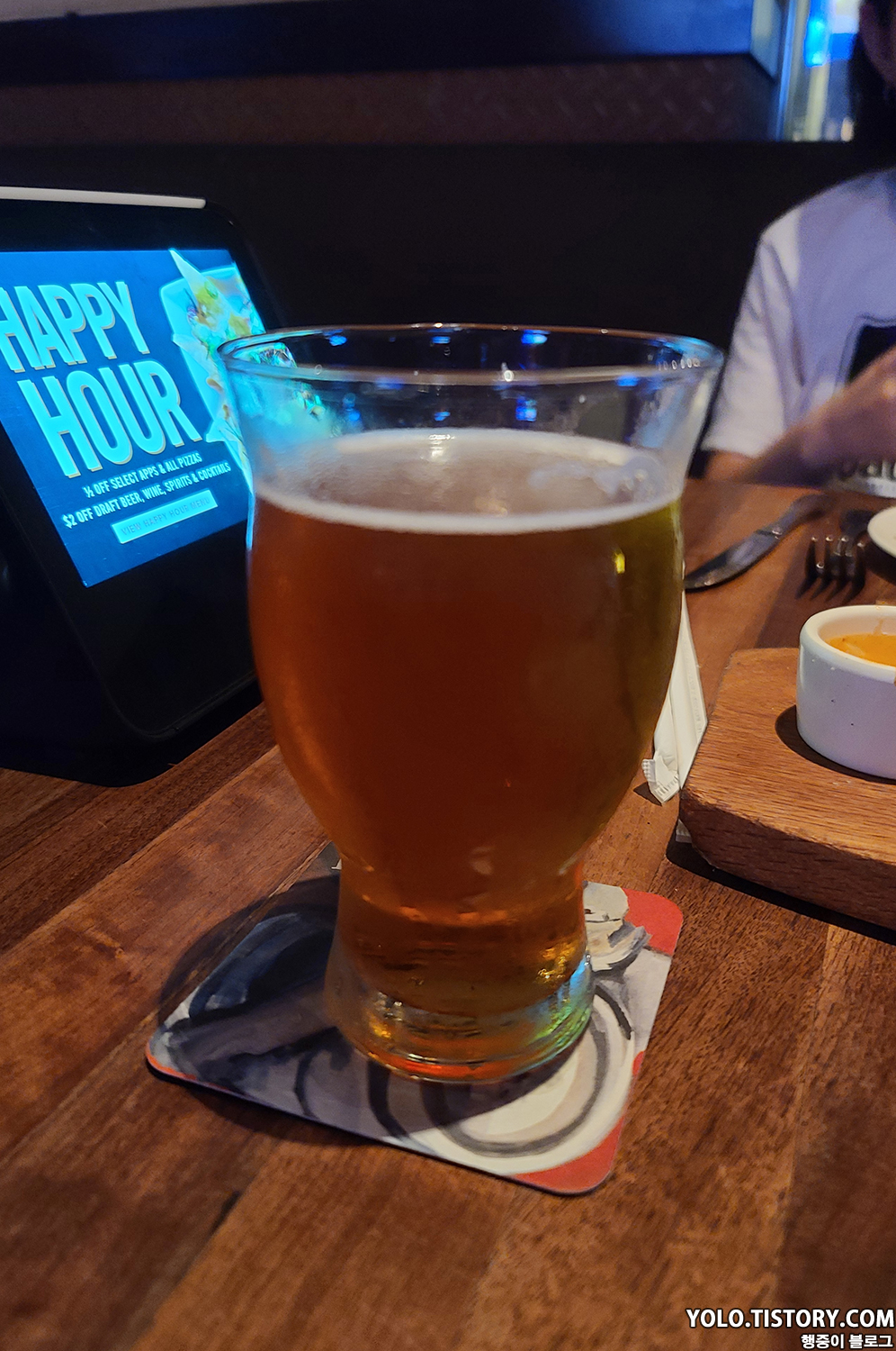 안주는 어니언 링과 피자를 먹었다. 먹다가 맥주를 더 시켰는데, 옆 테이블 맥주가 잘못 와서 공짜로 한잔 더 먹었다. 옆 테이블에서 맛있게 먹으라고 했던 것 같다. 팁 포함 $98 정도 지불했다. 비싸긴 했지만 분위기도 좋았고 나름 만족!