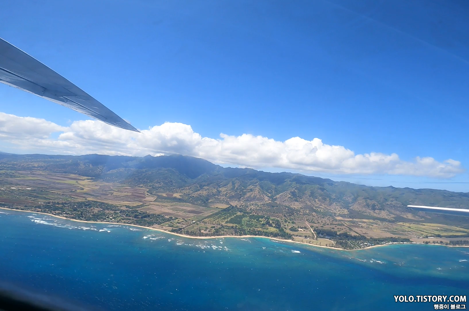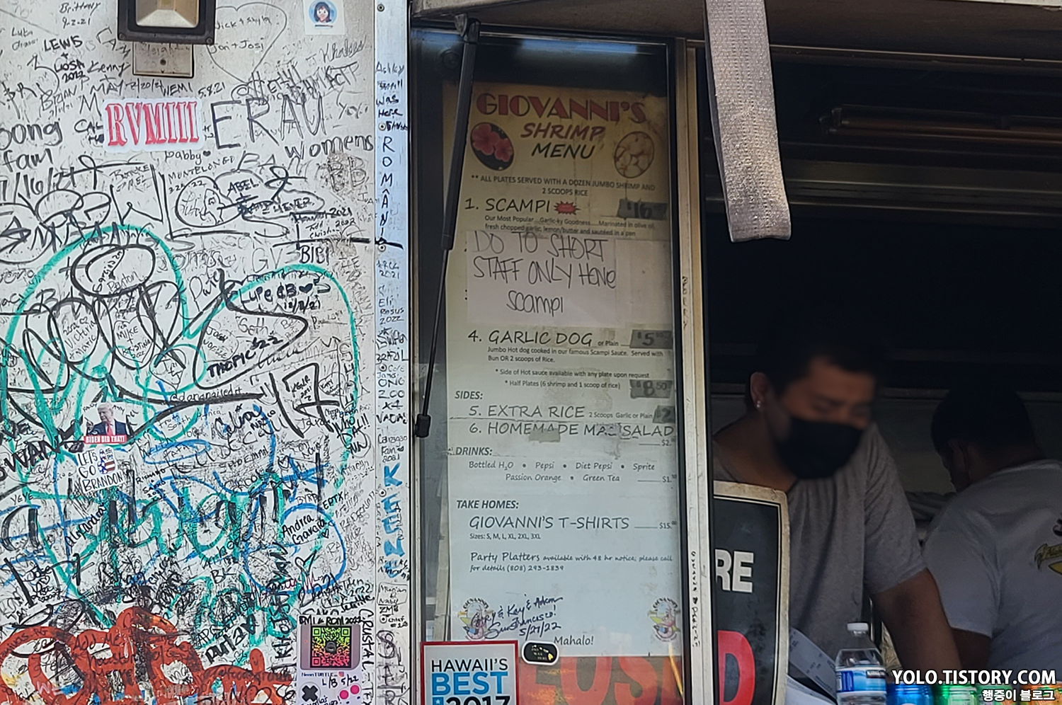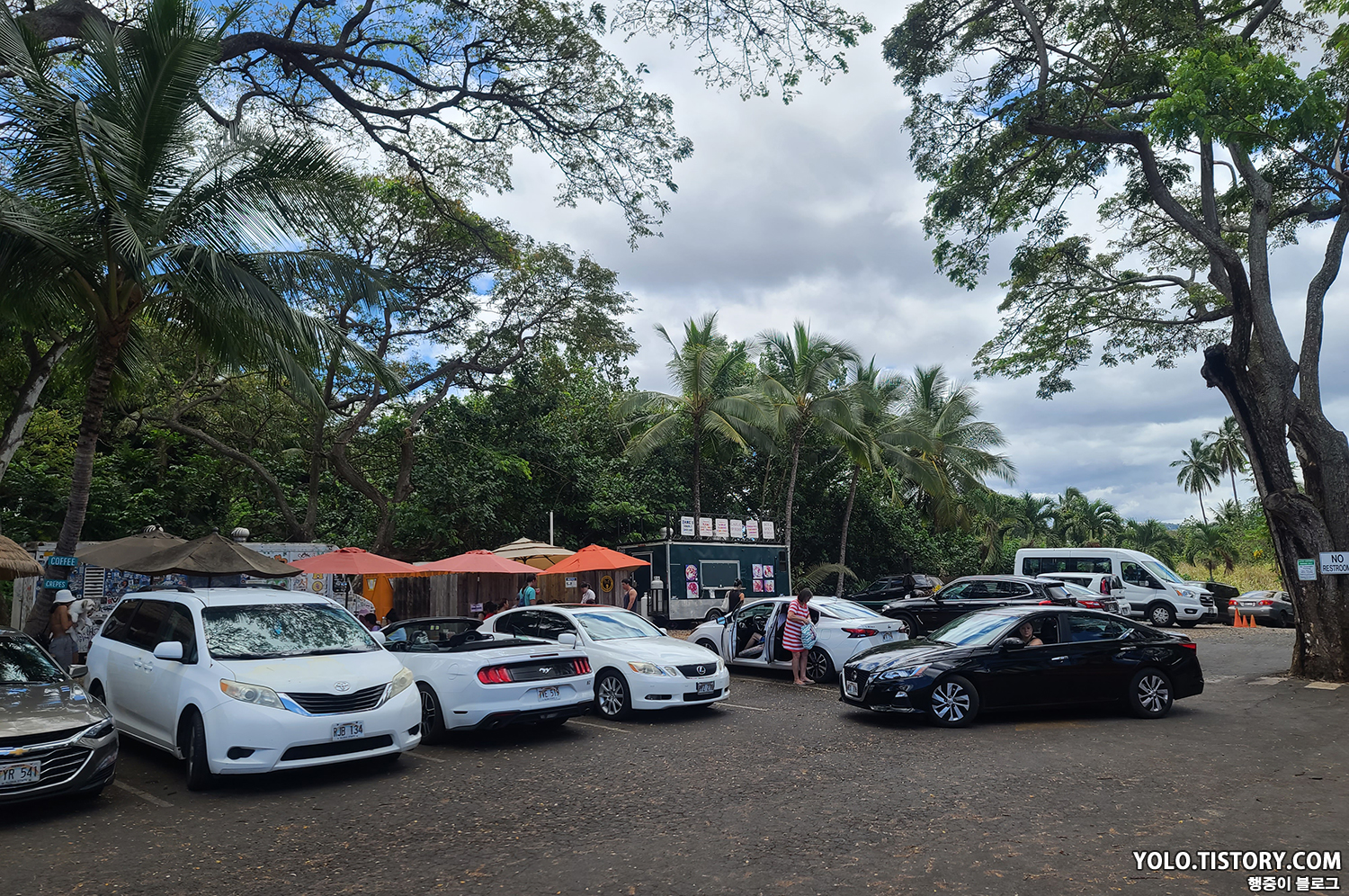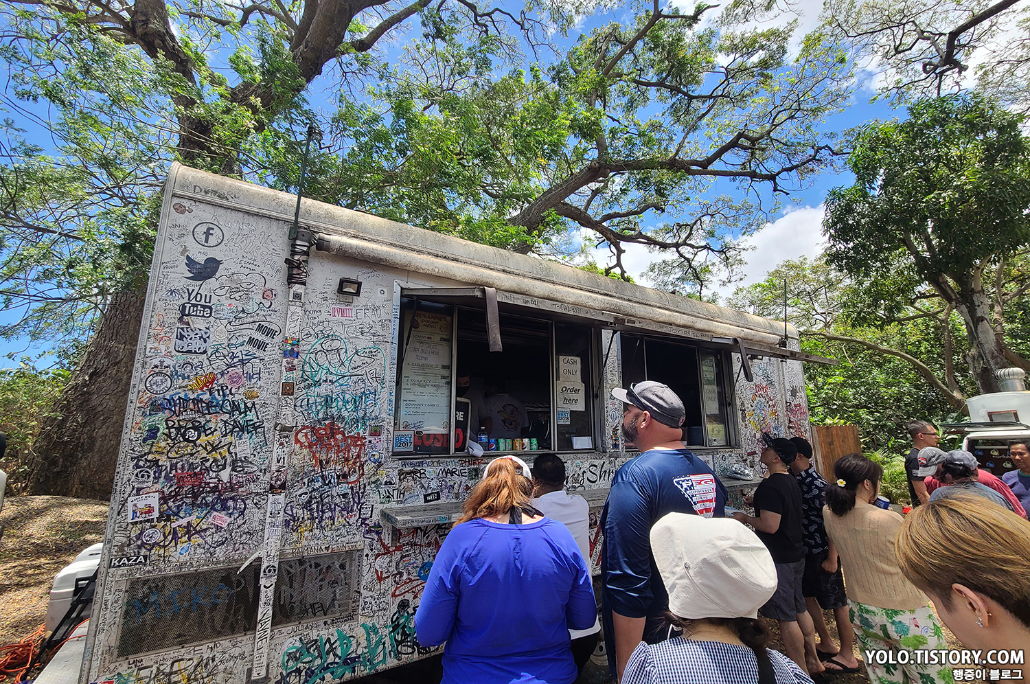이제야 눈앞에 펼쳐지는 끊임없는 바다와 아름다운 섬. 교관님이 저쪽이 호놀룰루라고 가리켜줬는데 사실 눈에 안 들어왔던 것 같다. 착지를 위해 빙글빙글 도는데 이게 더 무서웠다. 잘못 착지하면 다친다고 해서 걱정했는데 냥 다리만 들었으면 됐다. 스카이다이빙 인증서를 받고 교관님과 카메라맨에게 각각 $25를 팁으로 전달해주었다. 팁만 $100... 팁을 드리니 뭔가 살가워지신 느낌(?). 촬영까지 다하니 총 130만 원 정도 든 것 같다. 카메라맨이 촬영한 편집된 샘플 영상을 틀어주는데 확실히 영상을 찍었던 게 좋은 선택이었던 것 같았다. 사진도 몇 장 보여주면서 추가로 구매할 수 있다고 했는데 별 차이가 없어서 구매는 안 했다. 포스팅에 쓴 사진들은 다 촬영본 스크린 샷이다. 스카이다이빙의 예상 종료시간은 오후 3시였는데 오전 11시 30분에 끝나 일정이 조금 변경되었다. 지오반니 새우트럭이 가까워 이동했다.
