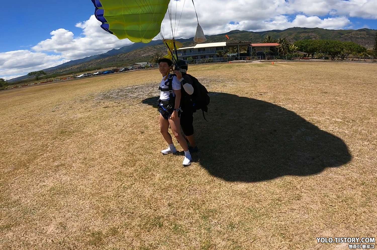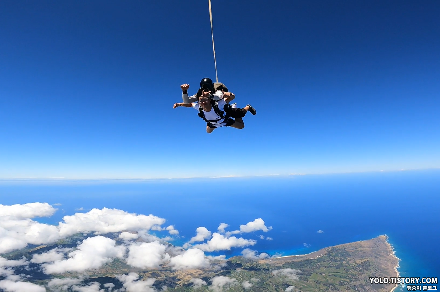 영화에서만 보던 스카이다이빙을 실제로 하다니.. 버킷 리스트를 하나 채웠다. 하늘에 있는 그 자체 만으로 즐거웠다. 실제로 다이빙하는 시간은 1분 남짓이다. 좀 익숙해질 것 같으니 낙하산이 펴졌다.