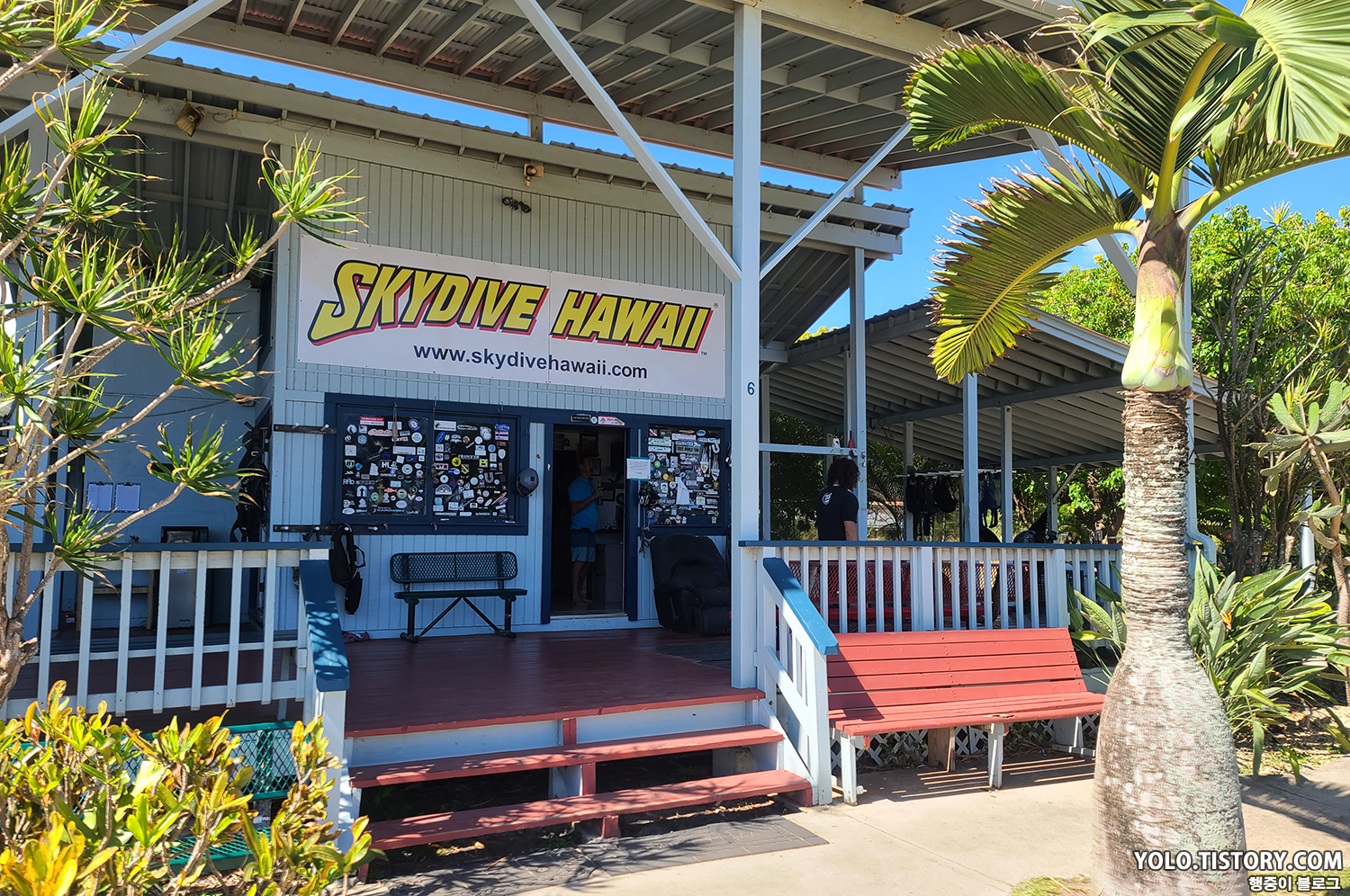 오늘은 스카이다이빙 하는 날! 예약한 곳은 스카이다이브 하와이다. 입구가 너무 사유지 같아서 지나갔다가 다시 유턴해서 들어갔다. 도착하니 오전 9시 정도. 넓디넓은 평야를 보니 나도 모르게 긴장이 됐다. 예약할 땐 영상 촬영이 인당 약 $170이라고 안내받았는데 실제로 가보니 $220였다. 뭔가 더 물어보고 싶었으나 포기 짧은 영어니 포기... 각자 영상 촬영을 하기로 한 뒤 예약 확인을 마쳤다. 휴대전화로 서약서를 작성 후 오리엔테이션 영상을 시청했다. 영상의 주제는 주의할 점들과 다치거나 죽어도 책임 안 지겠다 이런 내용... 영상을 보니 더 약간 싸늘했다.