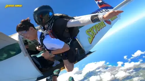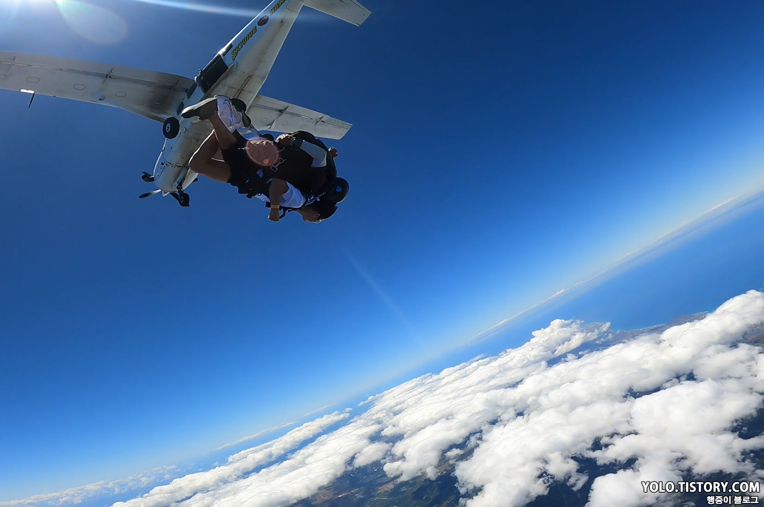 정말 어디까지 올라가는 거야 할 정도의 높이까지 올라갔던 것 같다. 이때가 가장 긴장이 되는 순간이었다. 어느새 경 비행기의 문이 위로 열리고, 찬바람이 엄청 들어오기 시작했다. 첫 번째 사람이 내리고, 내 카메라맨이 뛰었다. 그리고 내가 뛰어내렸다..!
