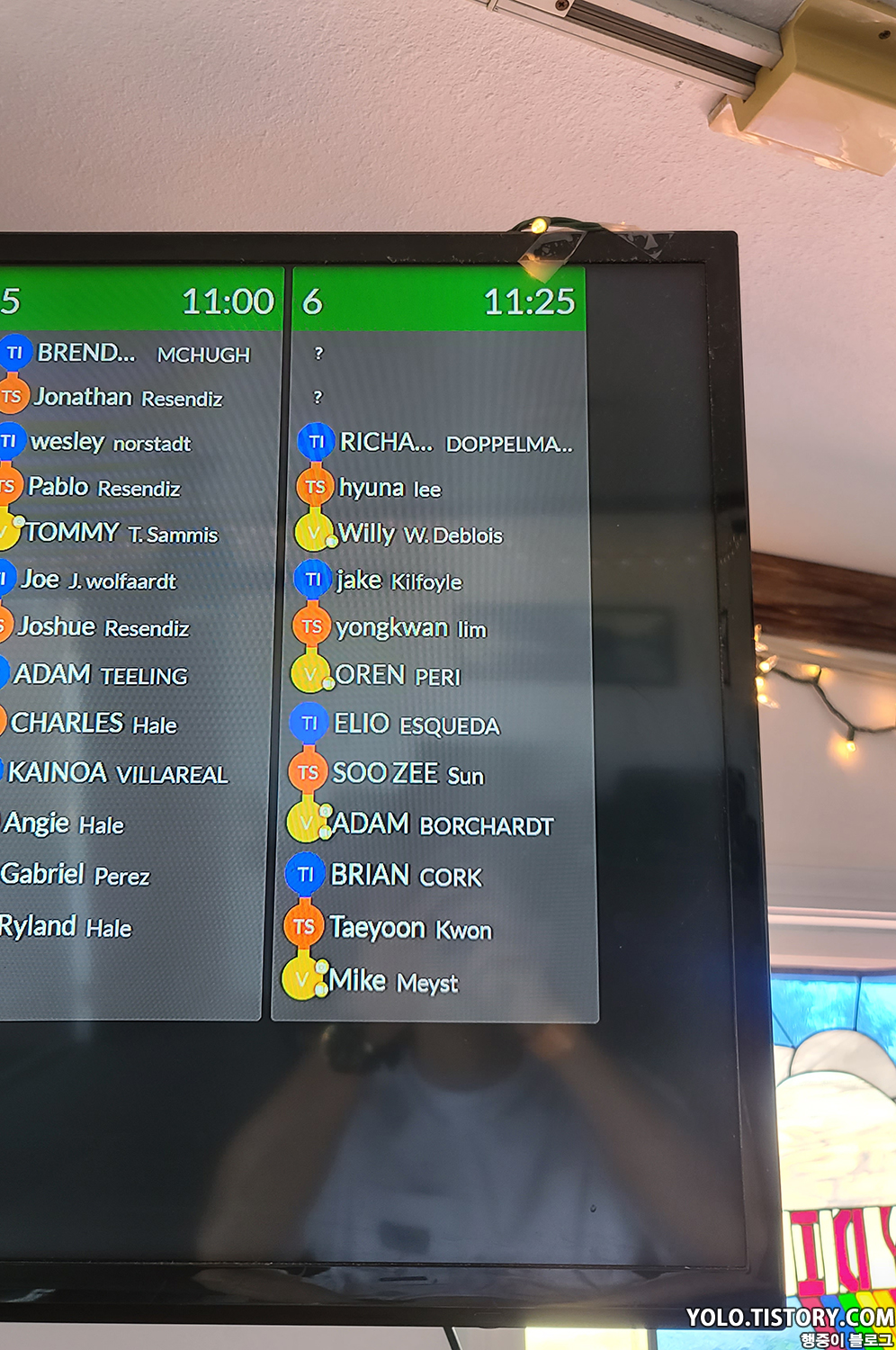새우트럭 주변엔 다른 푸드트럭들도 있는데, 단연코 사람이 몰리는 곳은 새우트럭 밖에 없었다. 기다리면서도 약간 눈치가 보일 정도.. 30분 정도 줄을 서서, 메인 메뉴인 스캠피($16) 두 개, 갈릭 도그($5), 소다($1.5) 두 개를 주문 후 번호표를 받았다. 주문을 마치면 반대편에서 번호표를 가지고 다시 줄을 서야 한다. 순서대로 나오기 때문에 미리 줄 서도 무용지물이니 참고!