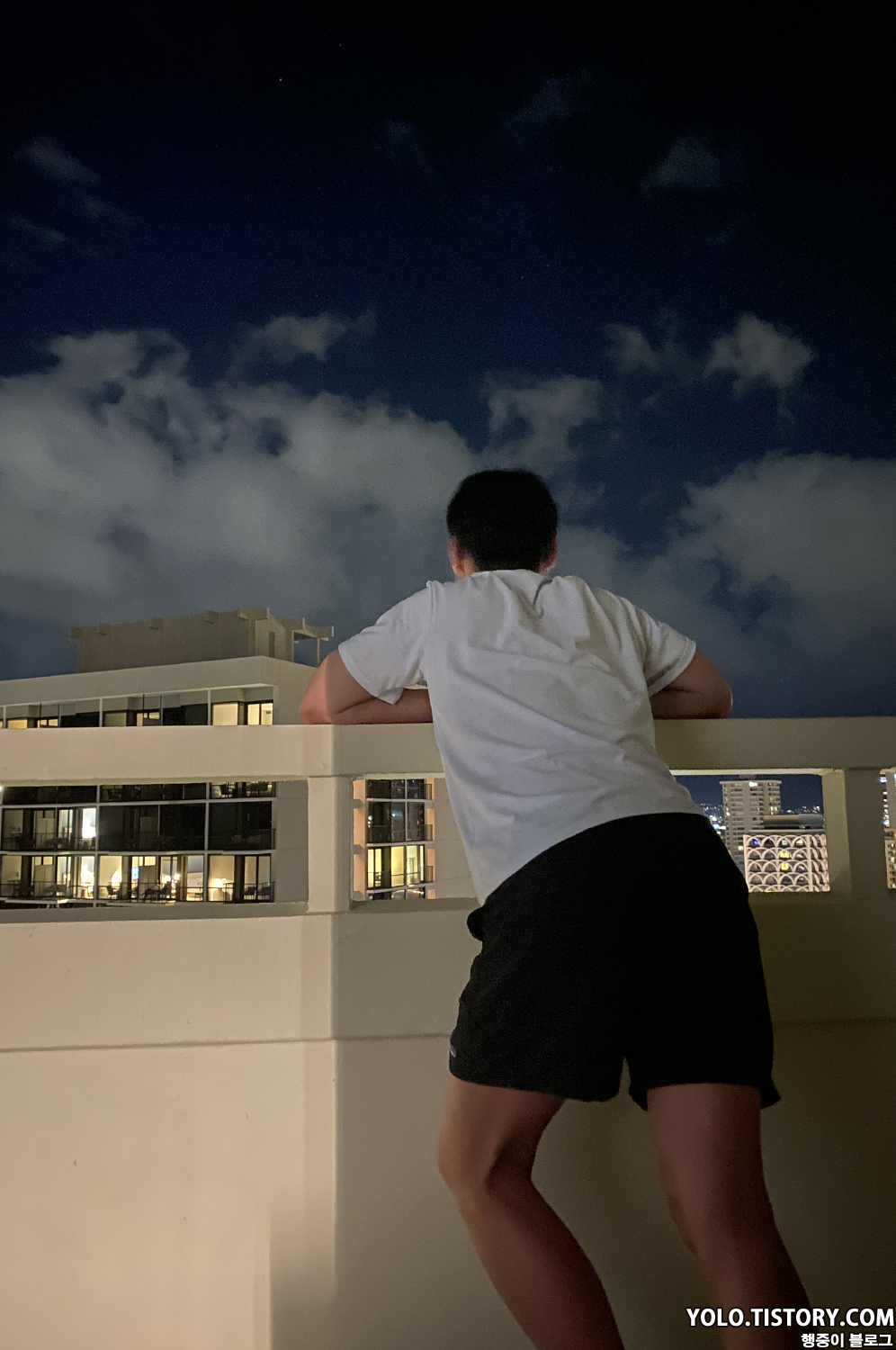 숙소에 도착해서 야경을 보며 한잔 더 했다. 아침 일찍부터 이동하기도 했고, 제일 기대하던 스카이다이빙도 끝내니 약간은 공허함도 있었던 것 같다. 이렇게 와이키키의 두 번째 밤이 지나갔다.
