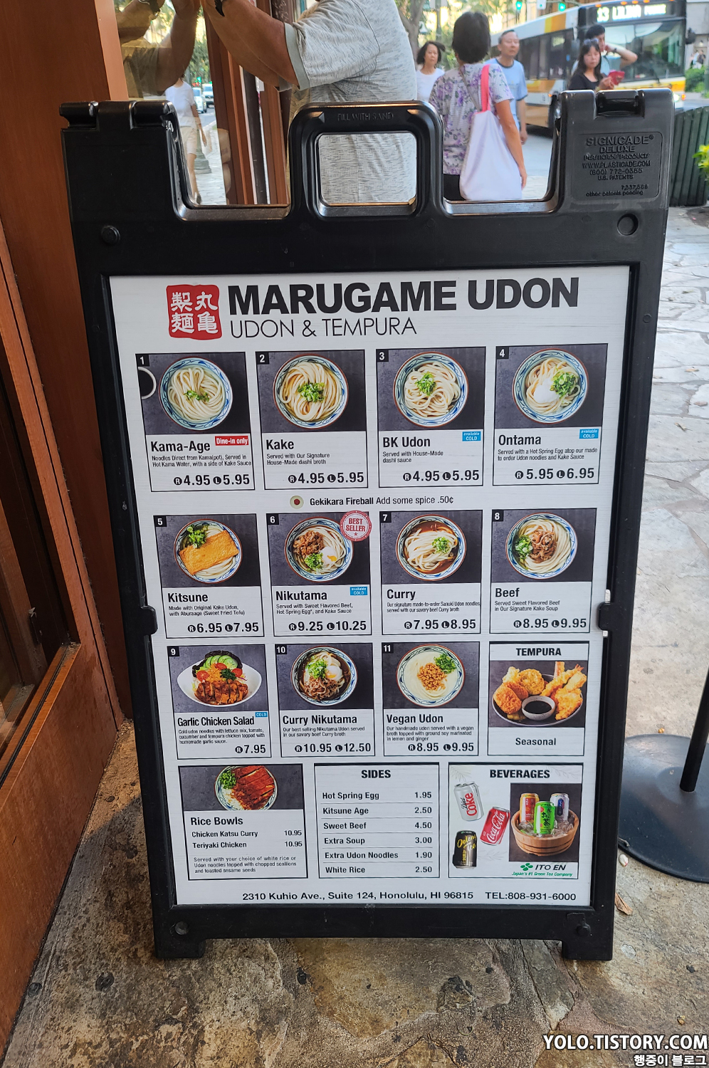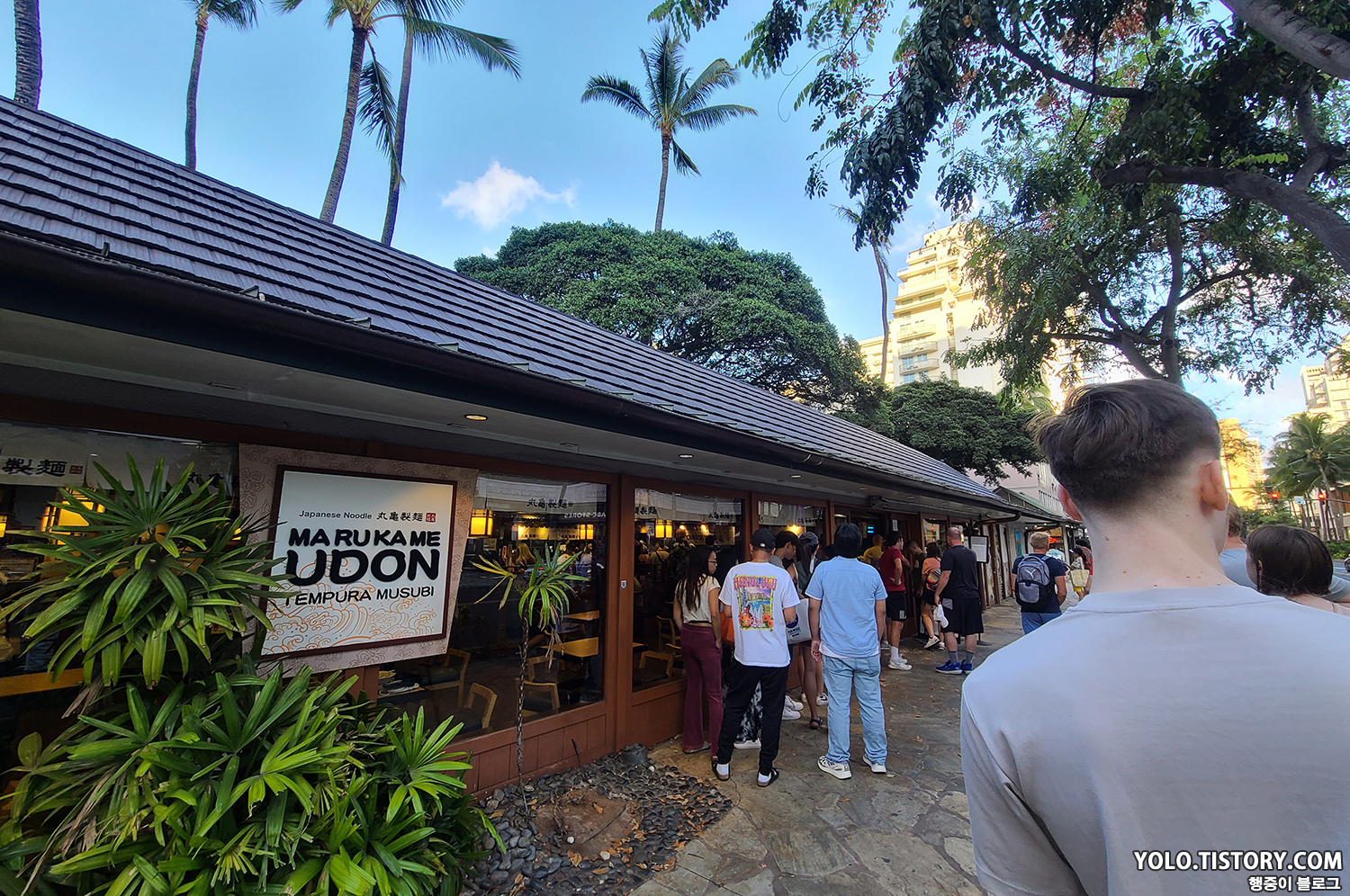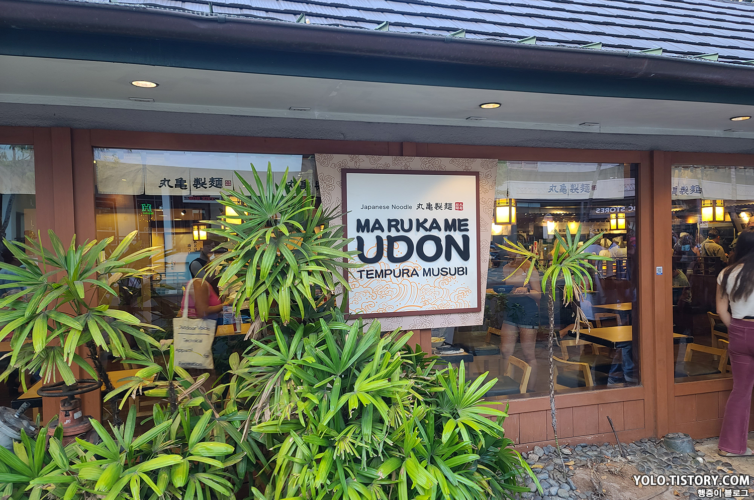 저녁은 마루카메 우동이라는 가게에서 우동을 먹었다. 마루카메제면은 일본의 우동 체인이라고 한다. 와이키키 시내에 있어서 외국인 관광객들이 많이 찾는 듯했다. 30분 정도 대기. 아내는 니쿠타마($9.25)를 먹고 난 카레 니쿠타마($10.05)를 먹었다.