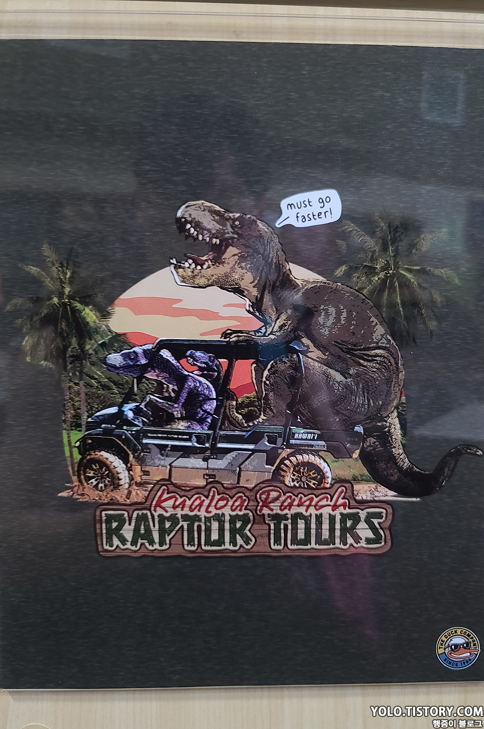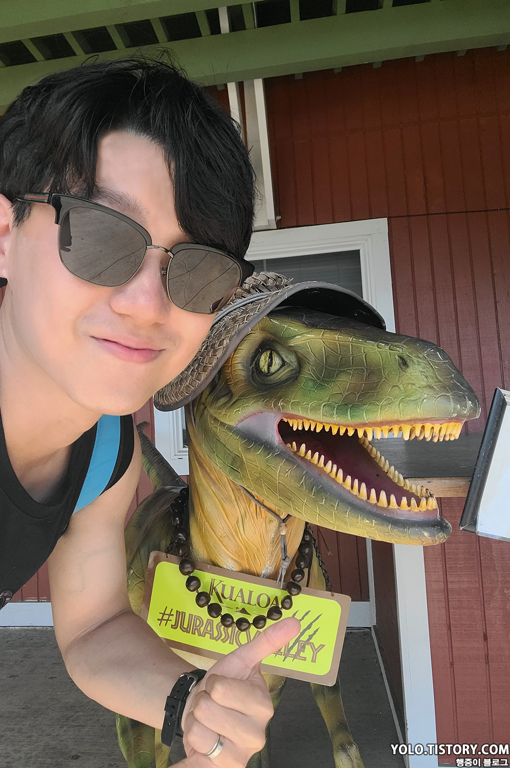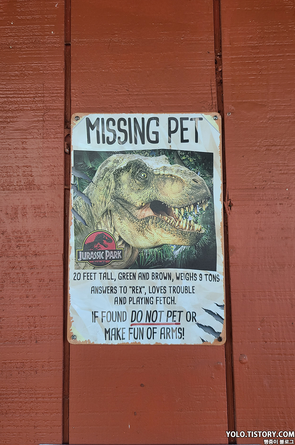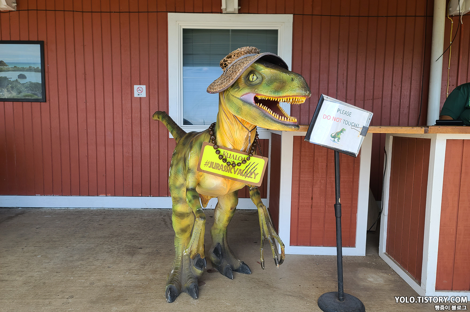 입구엔 랩터 한 마리가 관광객을 맞이하고 있다. 빠질 수 없는 인증 샷!