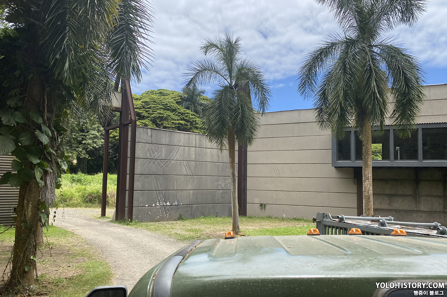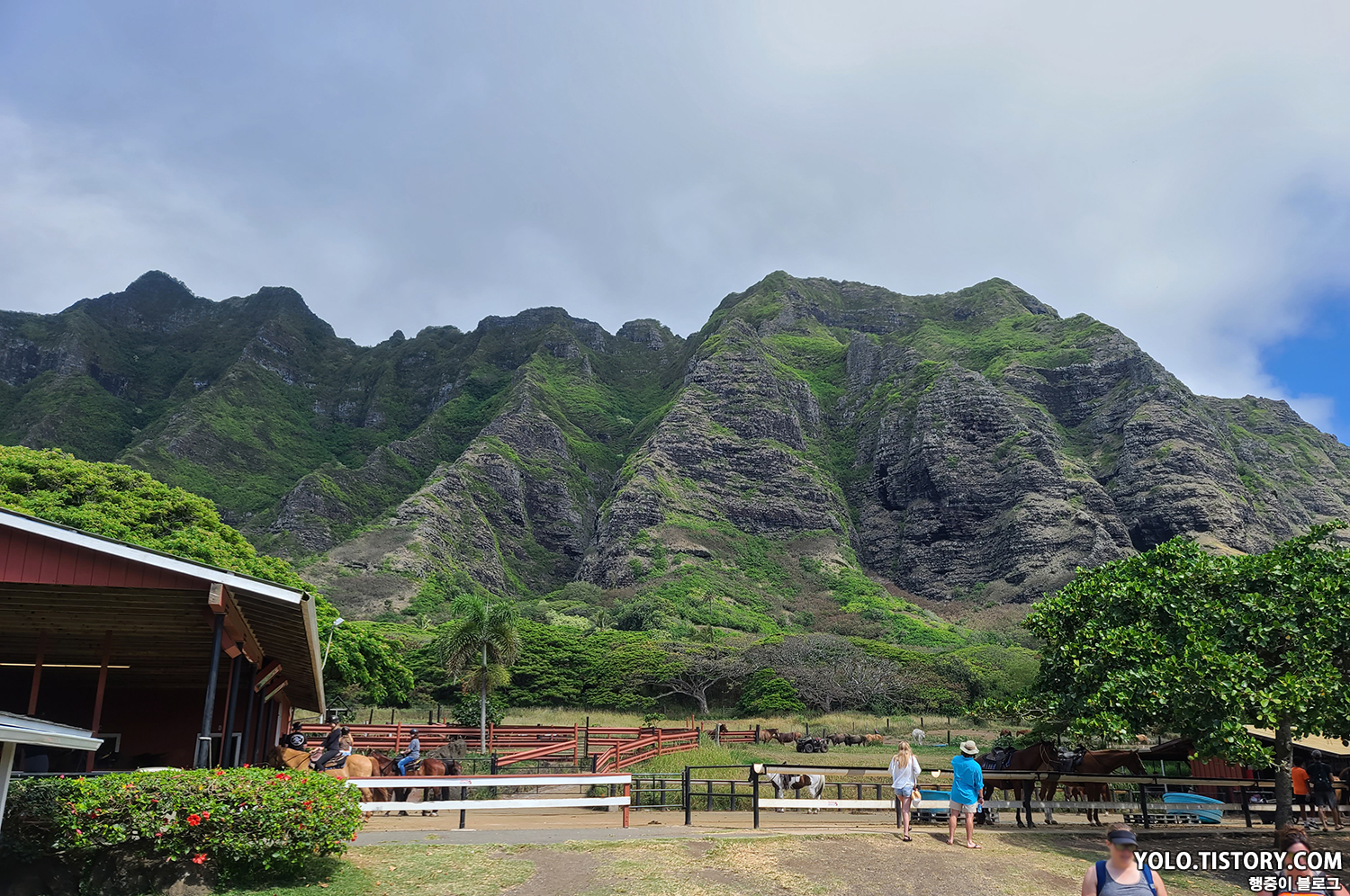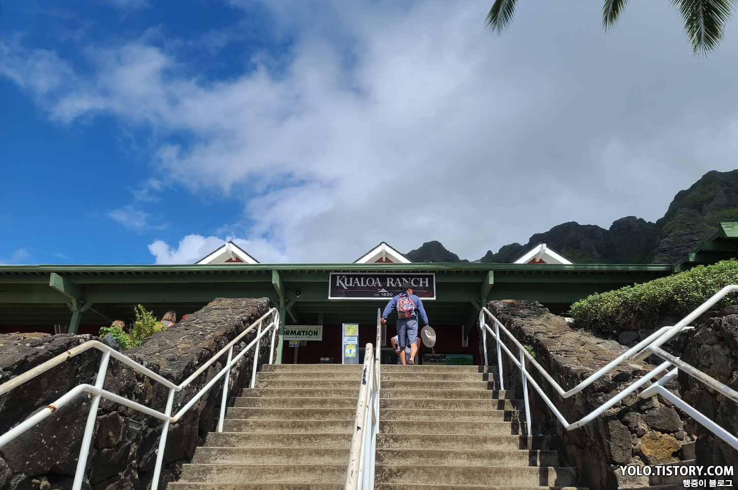 쿠알로아 목장은 오하우 섬 북동쪽에 위치하고 있다. 왕족들의 역사와 밀접한 관계가 있는 장소라고 한다. 숙소에서 약 50분 정도 걸려 오전 9시 40분쯤 도착했다. 인포메이션 간판부터 쥬라기 공원 느낌.