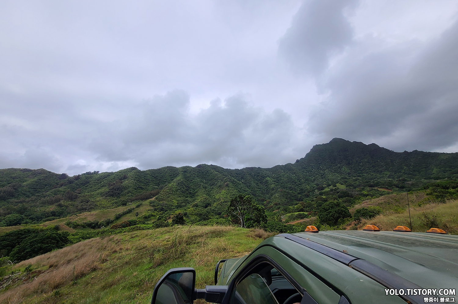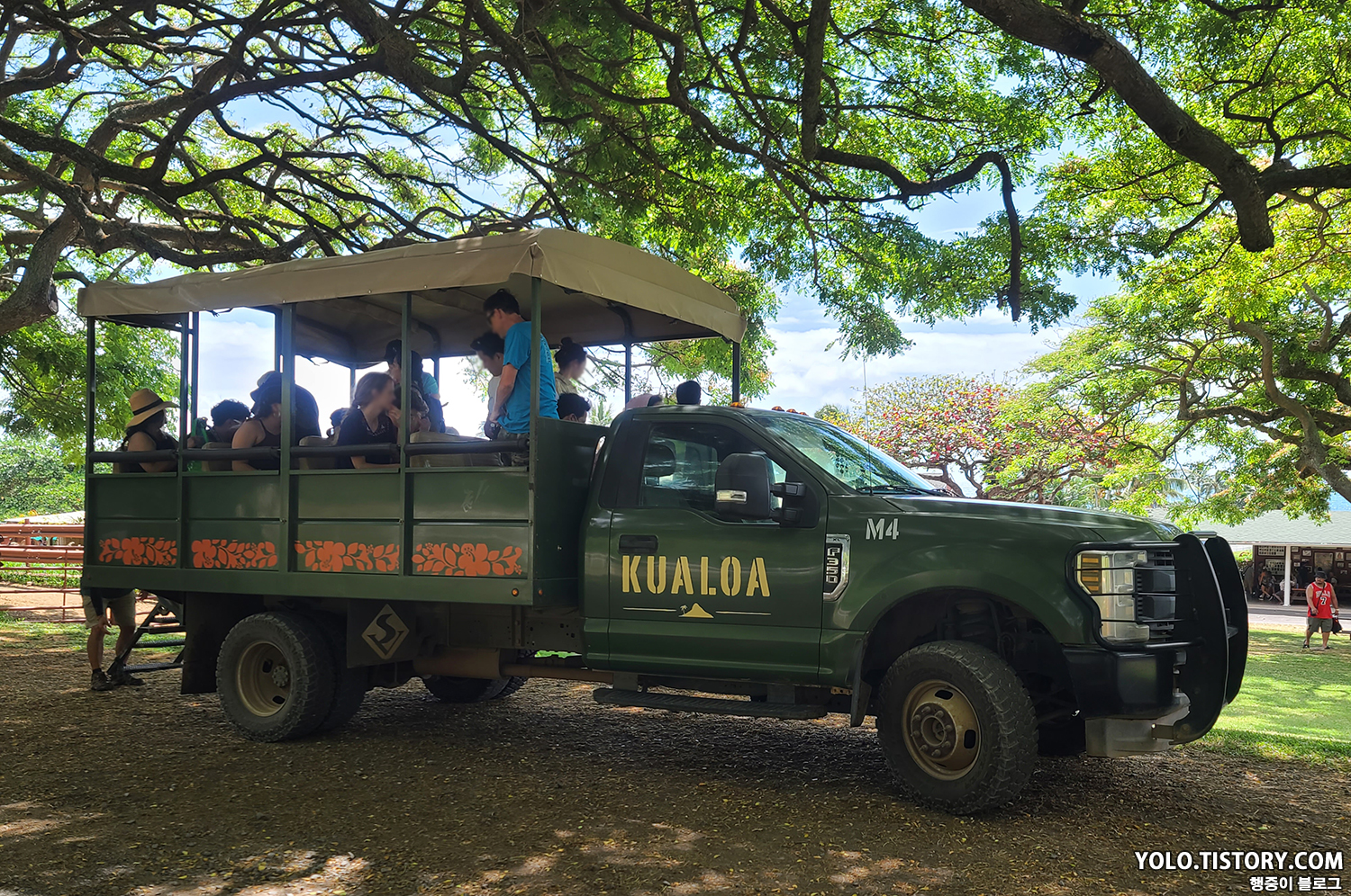 오늘 일정은 쥬라기 공원 촬영지로 유명한 쿠알로아 랜치! 공룡은 어릴 때나 지금이나 동심을 불러일으키는 동물인 것 같다. 쥬라기 공원 시리즈는 개봉할 때마다 극장에서 보고 있는데, 우리가 하와이로 출발한 날이 개봉 날이라 <쥬라기 월드: 도미니언>은 보지 못하고 갔다. 가는 길부터가 쥬라기 공원 느낌이 풀풀~