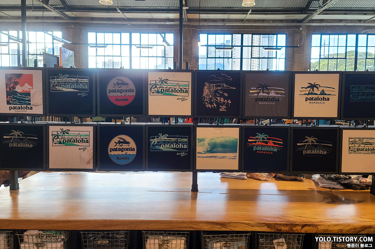 와이켈레에서 볼일을 끝낸 뒤 돌 플랜테이션에서 만난 브로가 말한 파타고니아로 향했다. 매장이 생각보다 엄청 컸다. 말한 대로 파타알로하라고 쓰여있는 티셔츠들을 잔뜩 판매하고 있었다. 남성용, 여성용, 키즈 등 종류별로 프린팅이 조금씩 달랐다. 이 매장엔 호놀룰루라고 쓰여 있는데, 할아이와 매장에 가면 할아이와라고 쓰여있다고 한다.