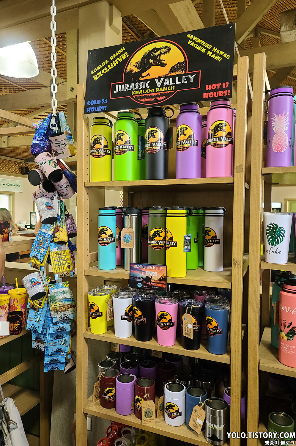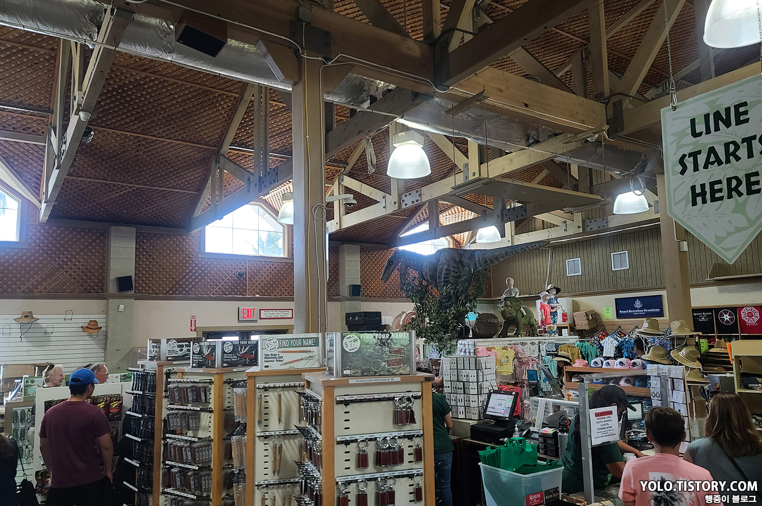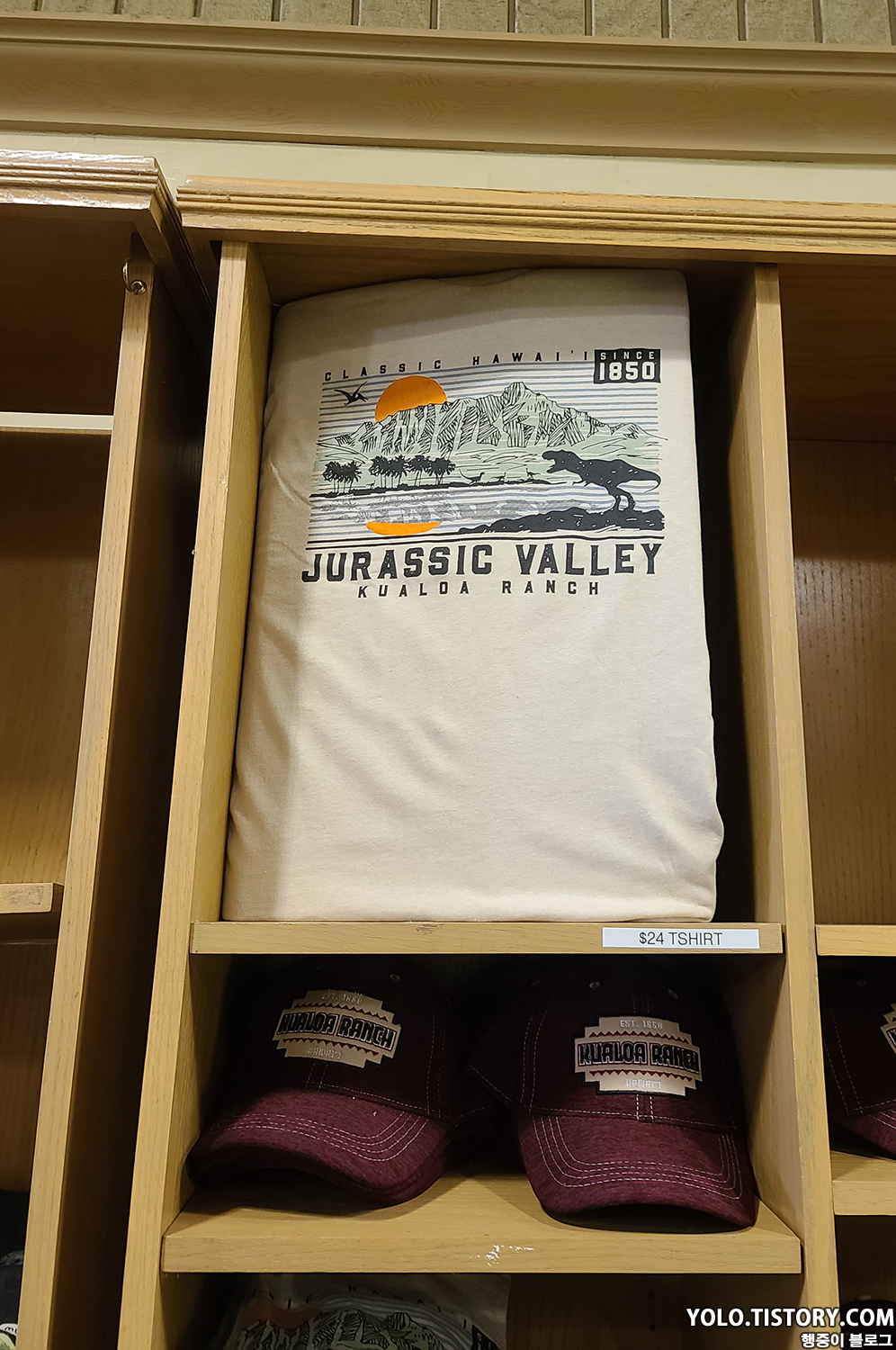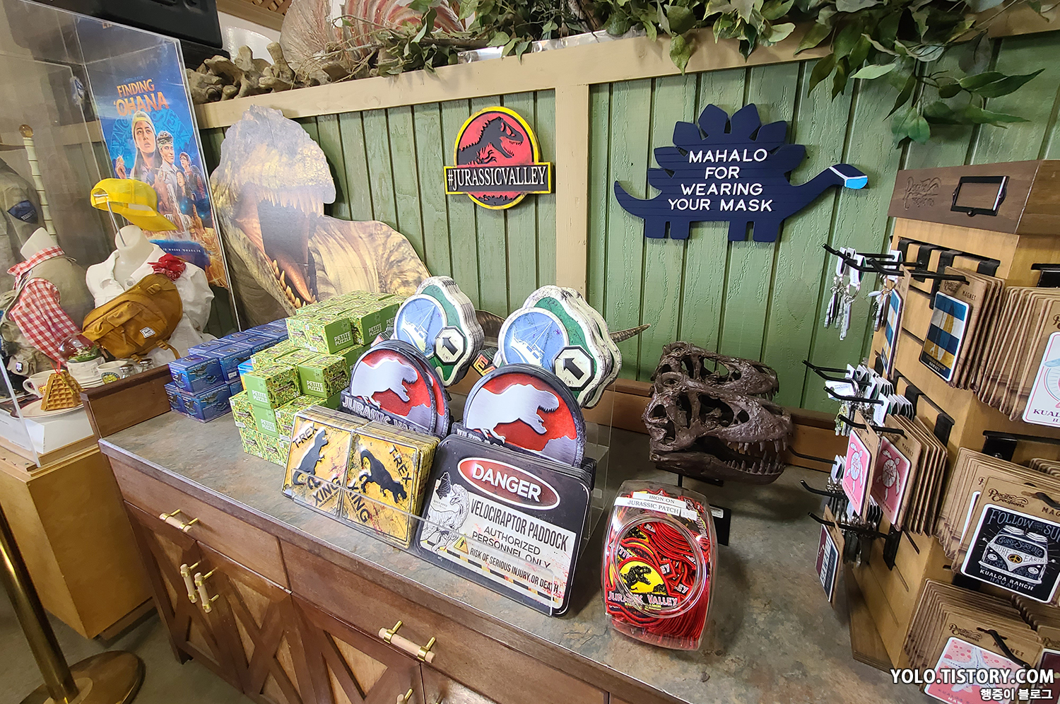 내부에는 엄청나게 많은 MD를 판매하고 있다. 저작권 때문인지 쥬라기 공원이라고 써있는 것 보단 쥬라기 밸리라고 쓰여있는 상품을 판매 중이었다. 기념으로 베이지 색상 티셔츠 한 장을 구매했다.