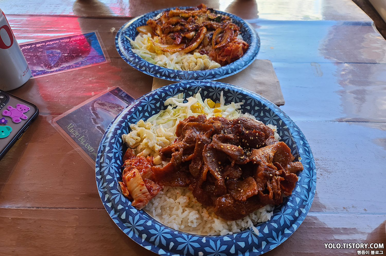 다시 온 와이켈레... 막상 다른 곳에서 구매하려고 하니 이만한 곳도 없었다. 아침도 제대로 먹지 못했기에 간단하게 푸드트럭에서 한 끼를 해결했다. 오징어 볶음과 제육볶음(각 $14.75)을 먹었는데, 개운하니 맛있었다. 다만 비둘기들이 주변에서 어슬렁~ 어슬렁~