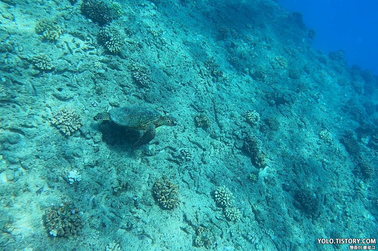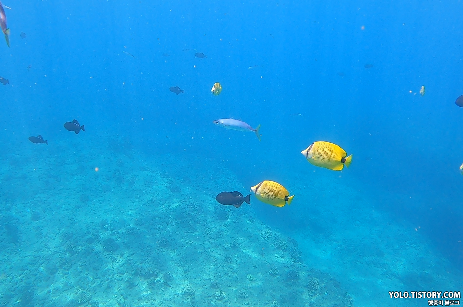 그러다가 어떤 외국인 커플이 바다에 고프로를 떨어트렸다. 여성 분이 떨어트렸는데, 주인으로 추정되는 남성분이 엄청 짜증을 냈다..ㅋㅋ 같이 동반했던 촬영 기사 분이 계셨는데 수심 깊게 내려가 시더니 고프로를 주워 주셨다. 존-멋