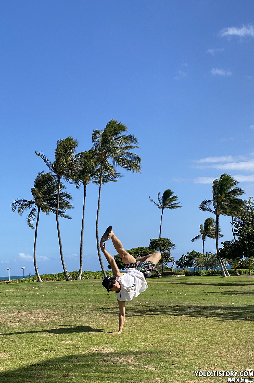 풍경이 너무 예뻐서 인증샷을 남겼다. 하와이로 출발하기 전에 열심히 연습했던 나이키 프리즈가 점점 제 모양을 찾아갔는지 날로 실력이 늘었다. 이 곳 저 곳에서 인증샷을 남겼는데, 사람이 많은 곳에서 했더니 한 일본인이 아주 좋아하면서 'Do it Again!'이라고 나에게 외쳤다. 머쓱했지만 한번 더 하고 ㅌㅌ....