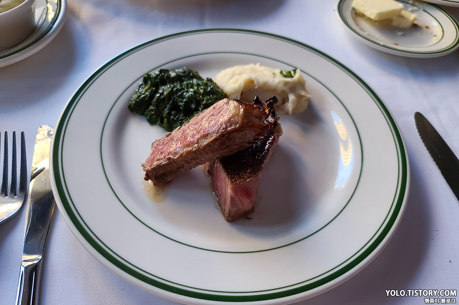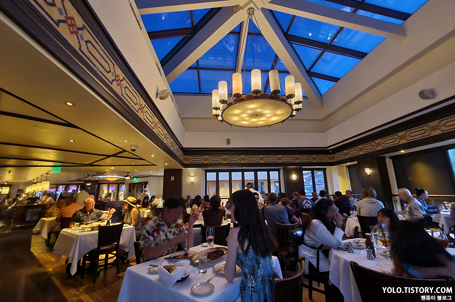 토마호크 스테이크($195.95)와 시금치($13.95), 메시 포테이토($13.95)를 주문했다. 한국인 관광객도 많이 오는 가게라 그런지 친절하게 한국어 메뉴판도 있었다. 스테이크와 함께 곁들일 끼안띠, 멜롯 글라스 와인도 한잔씩 주문했다. 시금치는 시래기 같으면서도 독특해서 기억에 남을 만한 맛이었다. 고기도 적절히 부드럽고 맛있었다. 아내가 고기를 먹다 느끼해서 못 먹어서 내가 호강했다. 담당 서버 분이 백발의 할아버지였는데, 우리 큰아버지를 닮아 호감이 갔다.ㅎㅎ