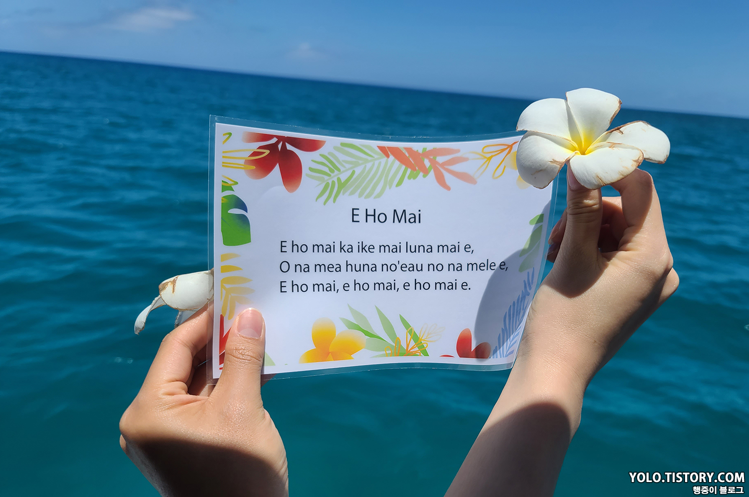 그러고 나서 가사가 적힌 팜플렛과 꽃 한 송이를 주더니 노래를 가르쳐주었다. 다 같이 노래를 함께 부르고 바다에 꽃을 던졌다. 안전한 항해를 기원하는 노래라고 한다.