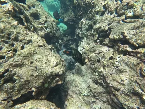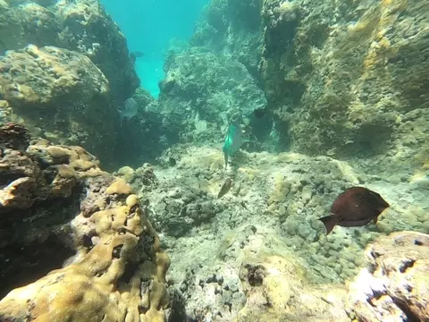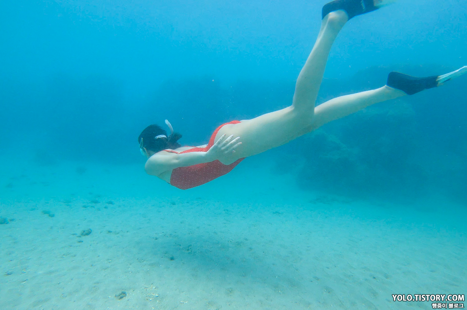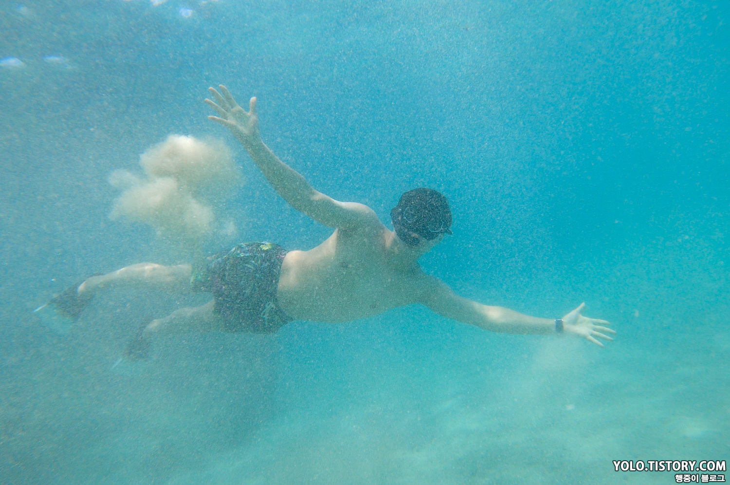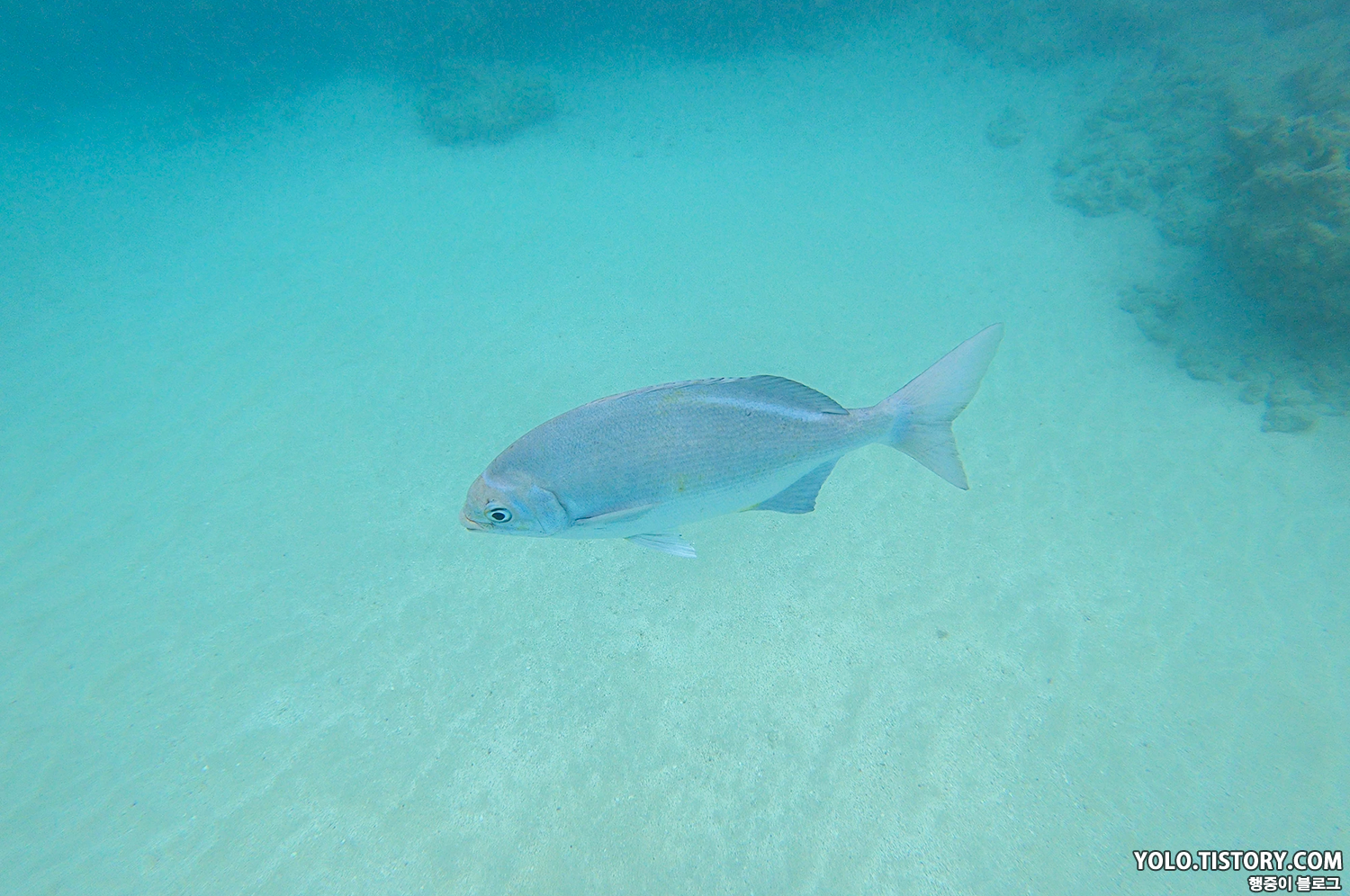 하와이에 와서 봤던 물고기들은 저리 가라 할 정도로 많은 물고기를 보았다. 돌이 많아 수심이 얕은 곳에 물고기들이 특히 많아서 그쪽 위주로 다녔는데 성인이 헤엄치기엔 너무 얕아 바닥과 부딪힐 수 있는 위험이 있었다.